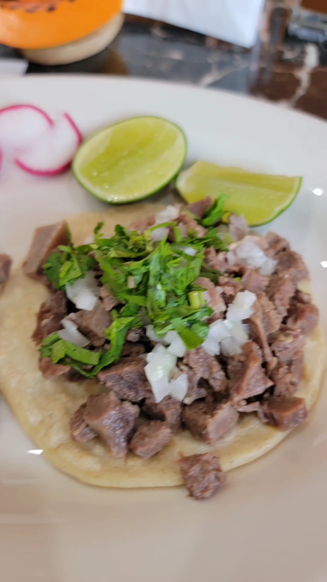 Chicken & Steak tacos - perfection! The radish was a great touch, and their hot sauce - chefs kiss!