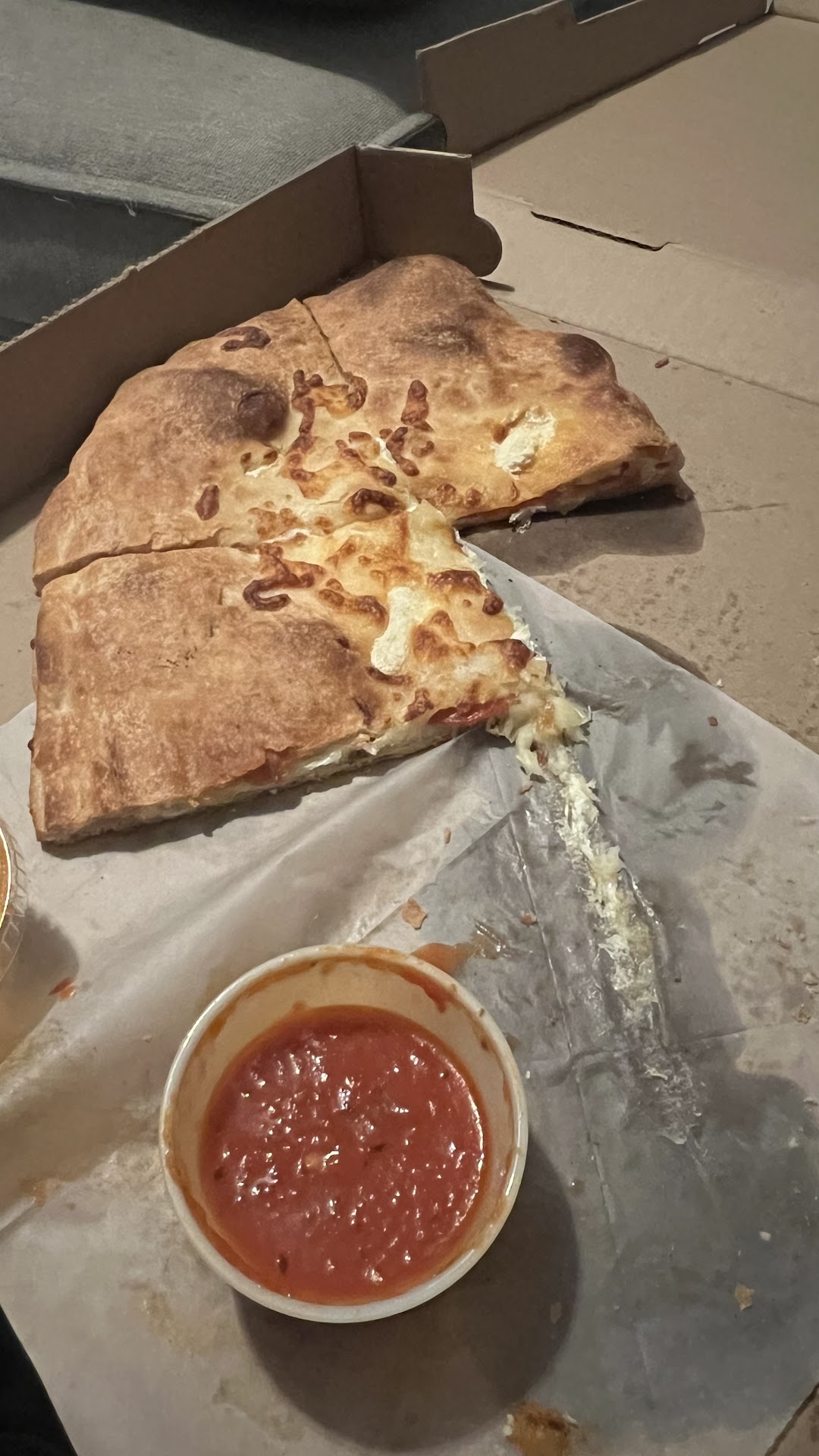 Third, why was the tomato sauce on the side? Calzones (and pizzas in general) are supposed to have the sauce inside. Serving it on the side just made the whole thing feel even more wrong.