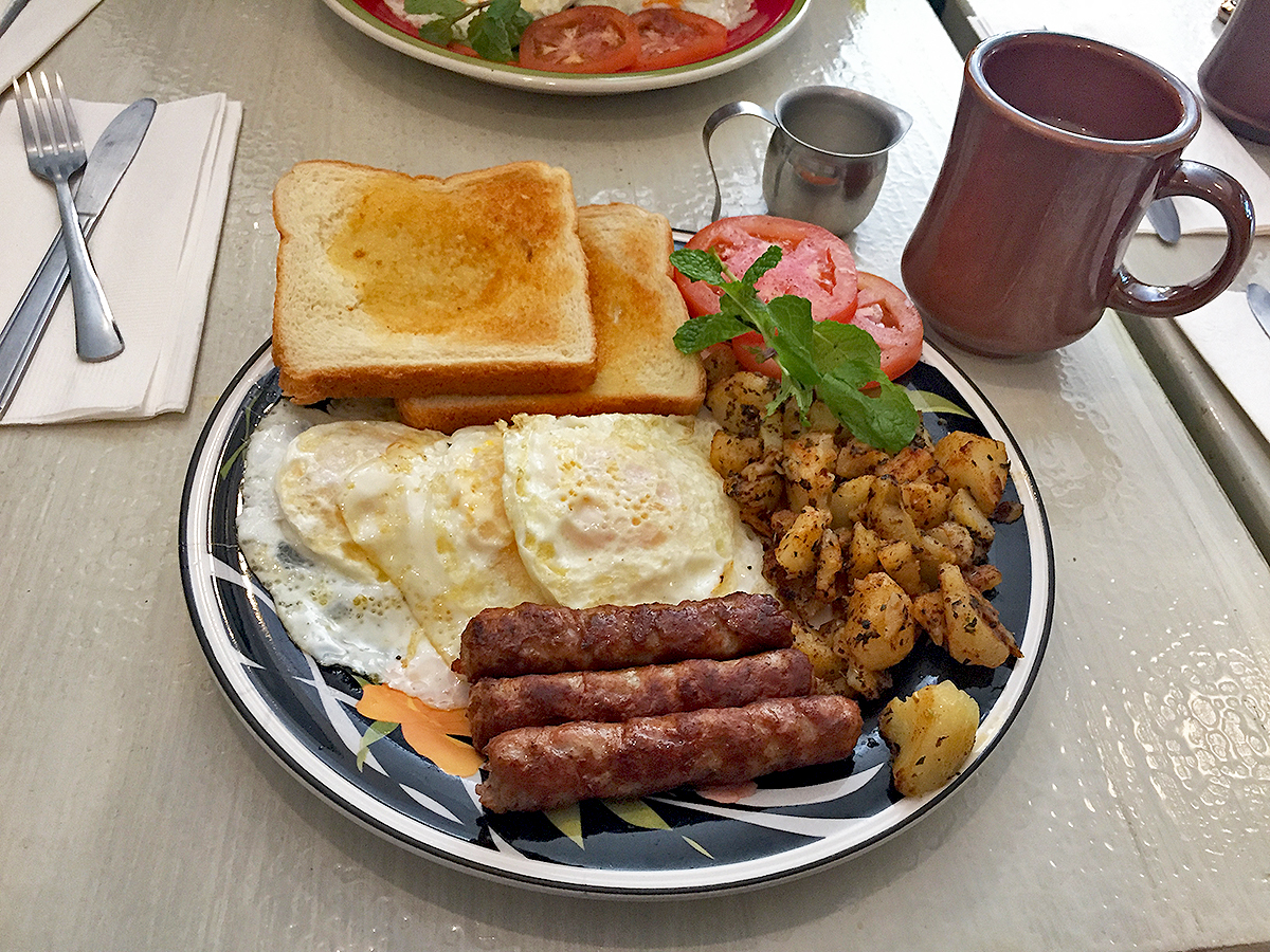 All the yummy breakfast food we had on our Little Dog plates was so tasty, perfectly soft and golden pancakes and French toast, delicious crispy bacon. It really hit the spot. There are 3 older guys here that must be the owners, and they were cooking and cleaning up and making sure everyone was happy! Can't wait to come back and try more...