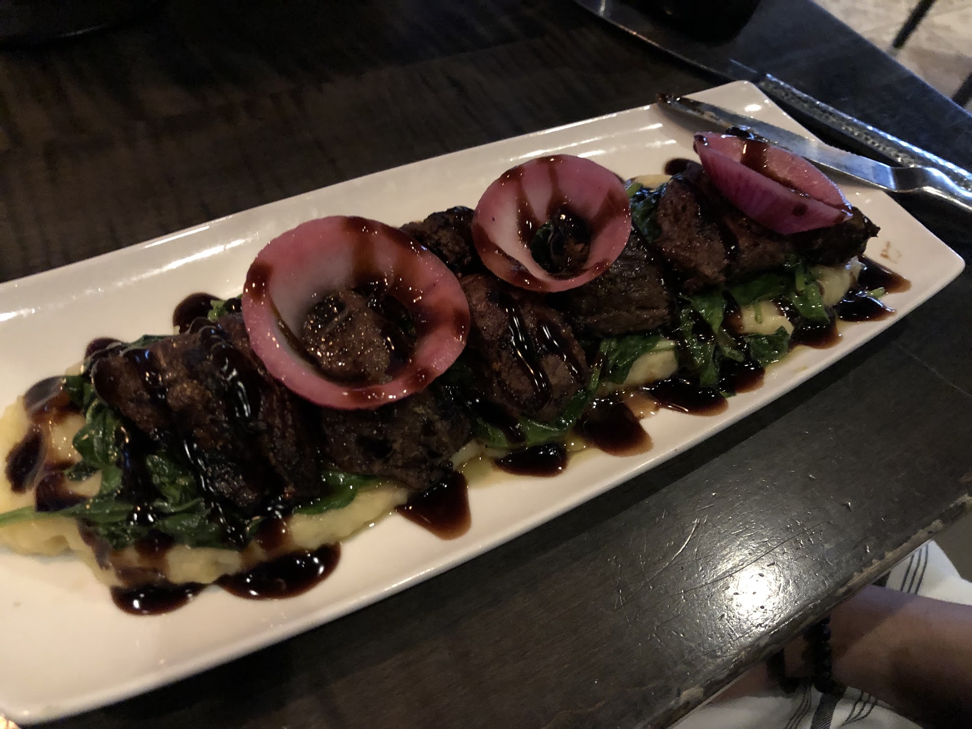 Really beautiful looking restaurant! Food was just so so. Service is not particularly attentive didn't seem like the restaurant was busy, but maybe just an off night for our server. I had to hunt somebody down to get a condiment. The food I got was really quite dry, mustard chicken sandwhich, so boy did I need the condiment.