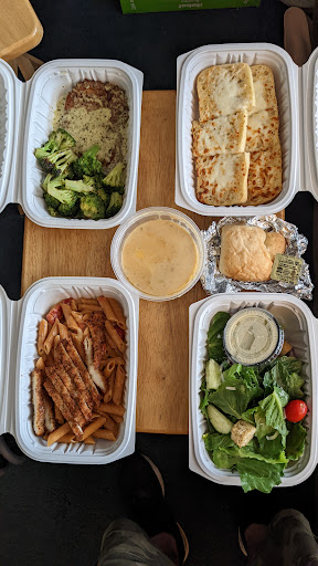 We got a few things for 2 people to share, and we each had large plates, and a third large plate for leftovers. See the pic attached. The half order of rigatoni* with vodka sauce, roasted red peppers, and chicken cutlet (*substituted for the chickpea penne for the fiber/health content. Note, if you want the gluten free chickpea penne but don't want everything else to be gluten free in that dish, it would be good to leave a note that the rest of the dish can have gluten. I did that, and the note was appreciated.) The sauce was delicious, and the chickpea pasta held up well! It's a different texture than normal pasta. I ordered for health reasons end expected it might be mushier, but it held form, had some bite, and does do some crumbling while chewing, but I'd get it again if health continues to say to avoid pasta. The half order of lemon pesto chicken cutlet with garlic broccoli was great. The buffalo chicken chowder was nice and thick, and the cheesy ciabatta bread was a great dipper for the soup! Small salad was plenty big enough for 2 people as a side....