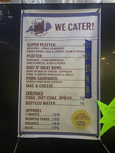 Read moreLucky Kentucky BBQ is the real deal! Their meat is unbelievably tender and juicy, packed with a perfect smoky flavor that makes every bite unforgettable. And the sides? Absolutely next-level. The mac and cheese is hands-down the best I’ve ever had—so creamy, cheesy, and downright addictive.
