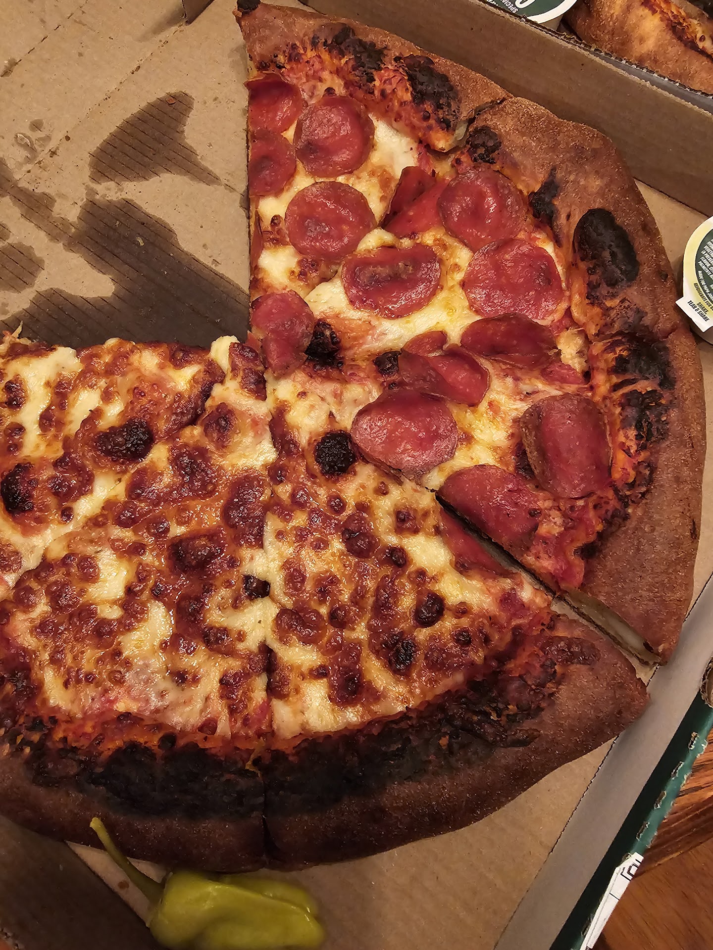 Read moreQuality has really gone down! This is the third time in a row we didn’t get out extras...two cups of garlic, one burger sauce and one pizza sauce. We scheduled it to be delivered at 6 and it arrived at 5:20. The pizza wasn’t cold but it was not hot at all. The manager, Brandy, offered to comp us a pizza or have our sauces delivered to us. We live just outside of town and I feel that would have taken a possible tip out of the drivers hands. My family hates the other pizza place in town so we order here. I guess we will start making our own...