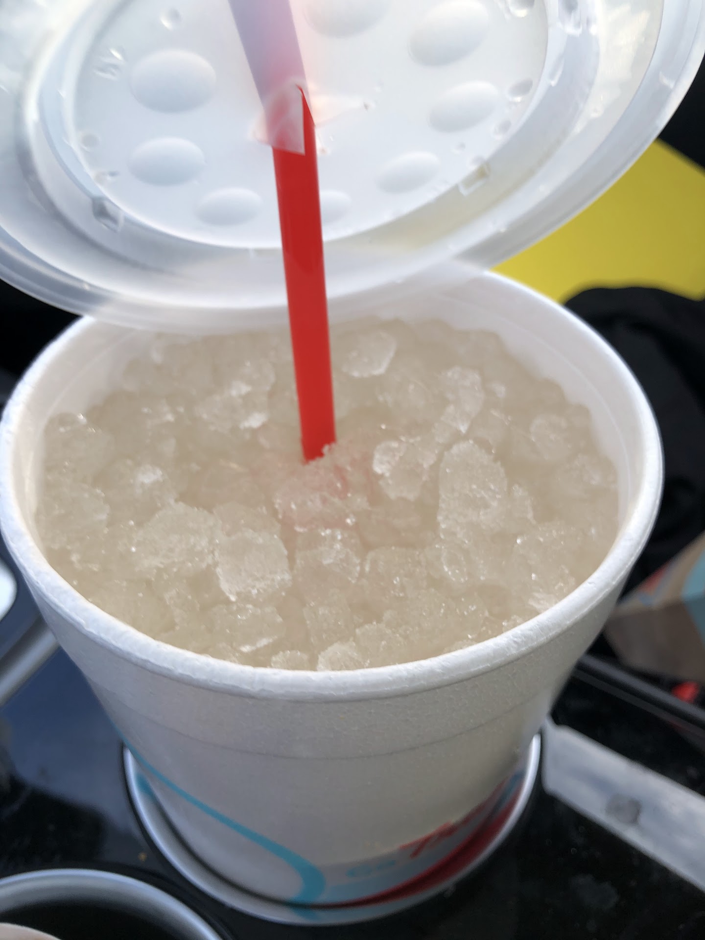 We got our ICE CREAM after waiting for 21 minutes. Yup, it took 21 minutes to make 2 blasts, a Root Beer Float, a Vanilla Shake, and a Grape Slush. The blasts ended up being only ice cream that they sprinkled toppings on.