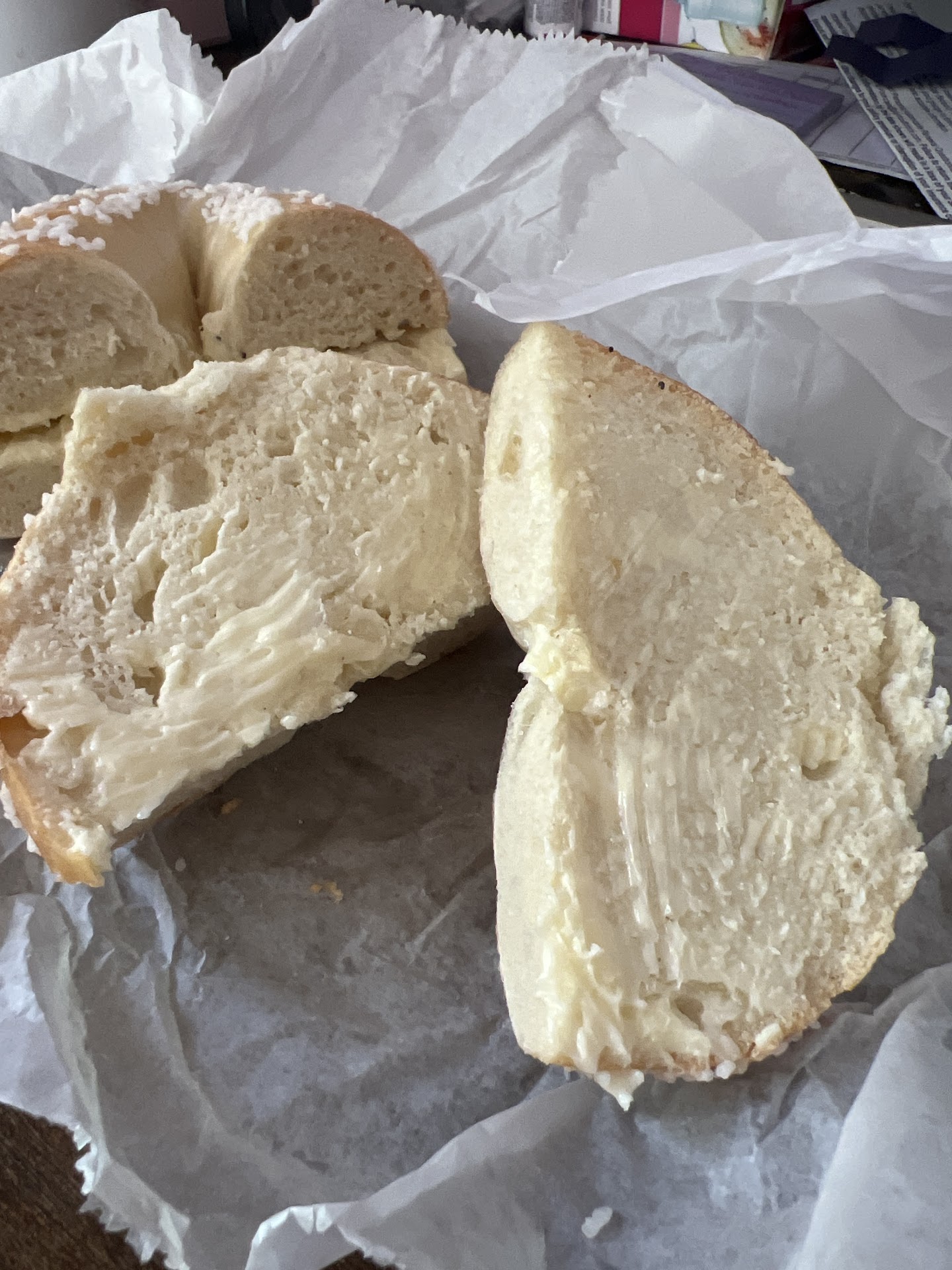 The coffee cake was buttery, crumbly, and delicious. It's weird to say the best thing I got at a bagel store was the coffee cake. The ratio of crumble to cake was spot on, and tasty.