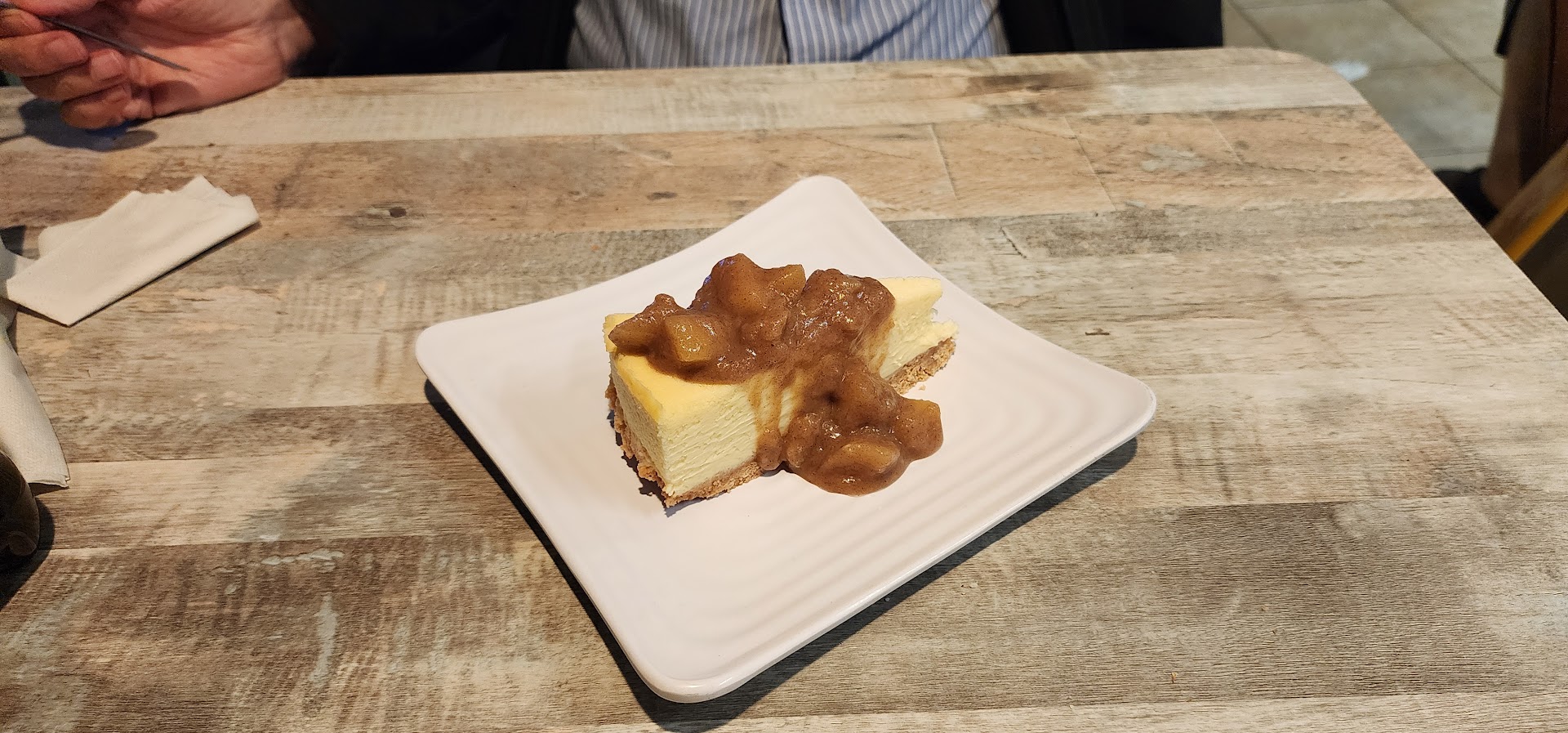 Read moreThis is a little, 4-table young family-run pizzeria and restaurant. Atmosphere is fun and very friendly. The spirit of the place is what makes it great, and of course the food, not the decor. The ingredients and recipes are special. We had a veggie pizza. The crust was flavorful, a little flaky, and just-right crisp. It did not become soggy at all! The toppings were all very fresh and delicious, and generous. The sauce was on the mild side, but a fresh tomato flavor came through. Normally we would stop at a pizza. But this place claimed to have the prize for best cheesecake in NJ, so we had to try it. The cheese part was a light, almost airy, burst of flavor with a smooth, airy quality. Quite remarkable.The crust was a tasty (maybe a wee bit thick) graham cracker base. Very delicious in all. Plus, the owners and young server were all fun and interesting people. The experience overall was memorable in a good way, not just...