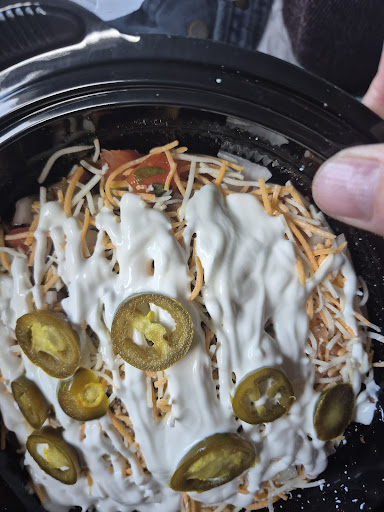 Read moreIf I could give 0 stars I would. I'm very disappointed considering other reviews on here especially. Makes me wonder if they're filtered. I got served rubbery charred on the outside raw on the inside steak tacos. Salsa was slimy. Lettuce wilted. My husband got the chicken bowl and didnt even make it half way through before running to the bathroom. Corn salsa tastes 3 days old. Peppers are soggy. Big waste of 20 dollars for 2 people. Should have went to the sit down restaurant next...