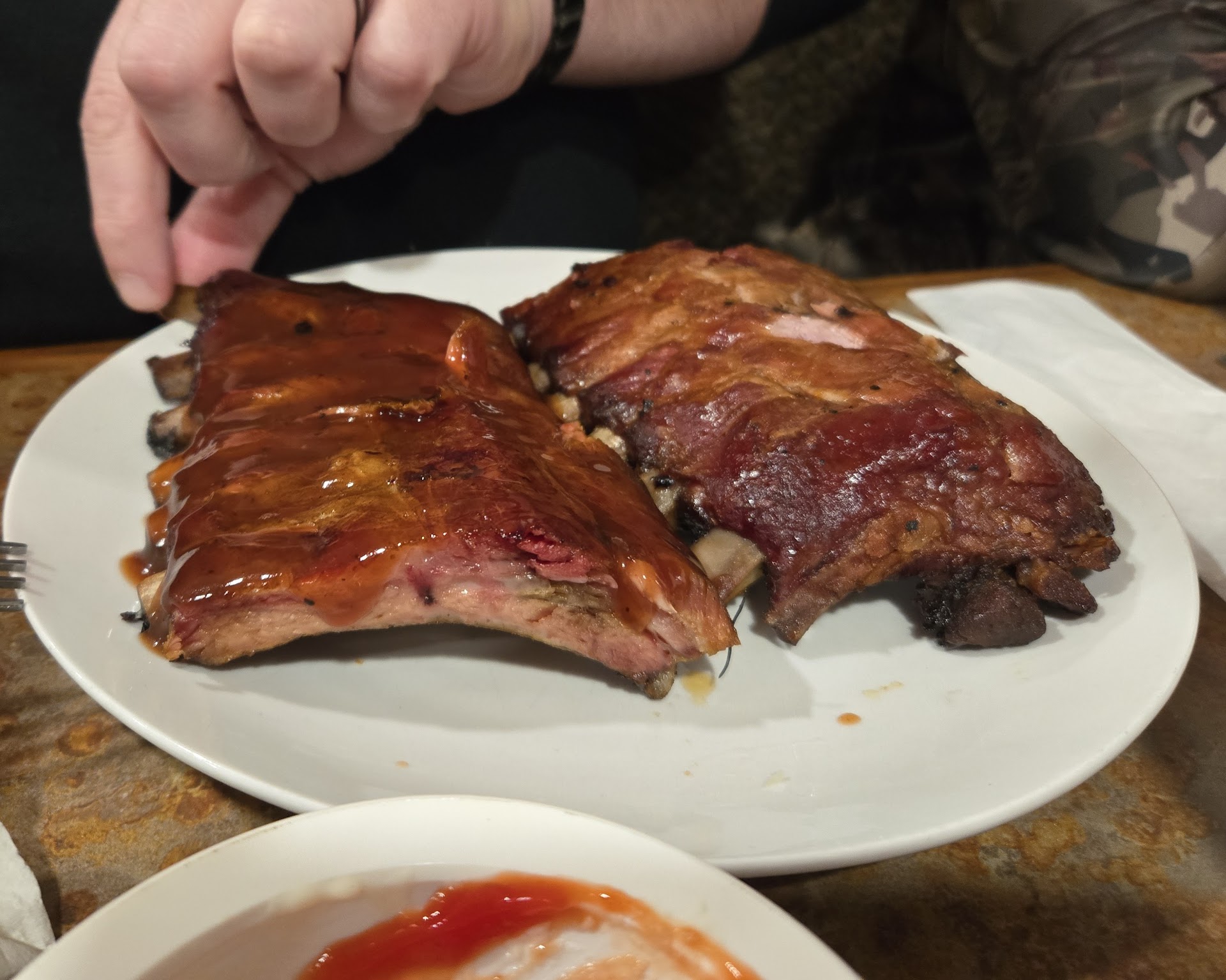 Tasty, Pizza-BBQ-Wings- Hand-dipped Hersheys ice cream, the only thing missing was beer! If anyone is looking for BBQ, this is the place to go. The BBQ place next door was sold and torn down to make office buildings, while the BBQ business itself moved inside of Marinas Pizza. Pizza was a little underdone, but the toppings were delicious, with the perfect amount and thinly sliced onion made all the difference. The wings were evenly sauced and savory. An order of their hand-cut fries didn't last long, and the sweet potato fries were hidden from the rest of the table and eaten on their own! The BBQ was excellent, and slaw was made in house. Finished it off with a scoop of Hersheys hand dipped ice cream, which made the experience all the sweeter. Just stopped in with 3 others, after a day trip- wait time was a bit long for it being slow, but service was decent and personable. Would recommend Maria's Pizza (and BBQ), and will stop in again next time going...