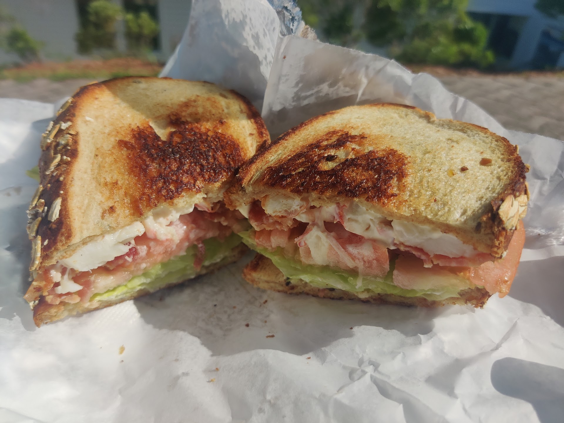 During my visit to Onset Beach, I was in the mood for a lobster roll. Typically, my family opts for the popular pizza spot in the area. I took a stroll and found this place. There were a few customers who looked to be enjoying their food. Unbeknownst to them, the gentleman who ate at the window seat was selling their food. He's the very reason why I walked inside. When someone takes a bite of food , then leans back to enjoy it, that's a good sign for sure. I ordered the lobster BLT on sourdough (there are other bread options for their sandwiches) and it did not disappoint. Atmosphere: Clean and spacious. Has a beachy theme and can easily become a popular spot for casual meetup with friends and family. The staff was constantly moving (making juices, cleaning, restocking, etc). Each of them made sure to acknowledge patrons. Food: It is made to order so there was a wait. I'm cool with that because my bacon wasn't sitting around waiting for me to come in and ask for it to be put on a sandwich. I like a fresh order and that's exactly what I got. The mayo/lobster ratio is respectably light which keeps everything as it should be and not soggy. The sandwich was savory (thanks to the crisped bacon!) with a delightful crunch from the toasted bread. There's also a juice bar menu. The selection looked great but I opted out on this visit. I'll definitely give it a try next time. Service: We were greeted right away. The staff answered any questions I had and suggestions were made which ensured that I had a good experience. Price: I paid $14 for my sandwich. It was totally worth it. Especially, since I was only able to eat half. Yeah, it was a hearty sandwich which would definitely run you more in most areas popular for lobster rolls.