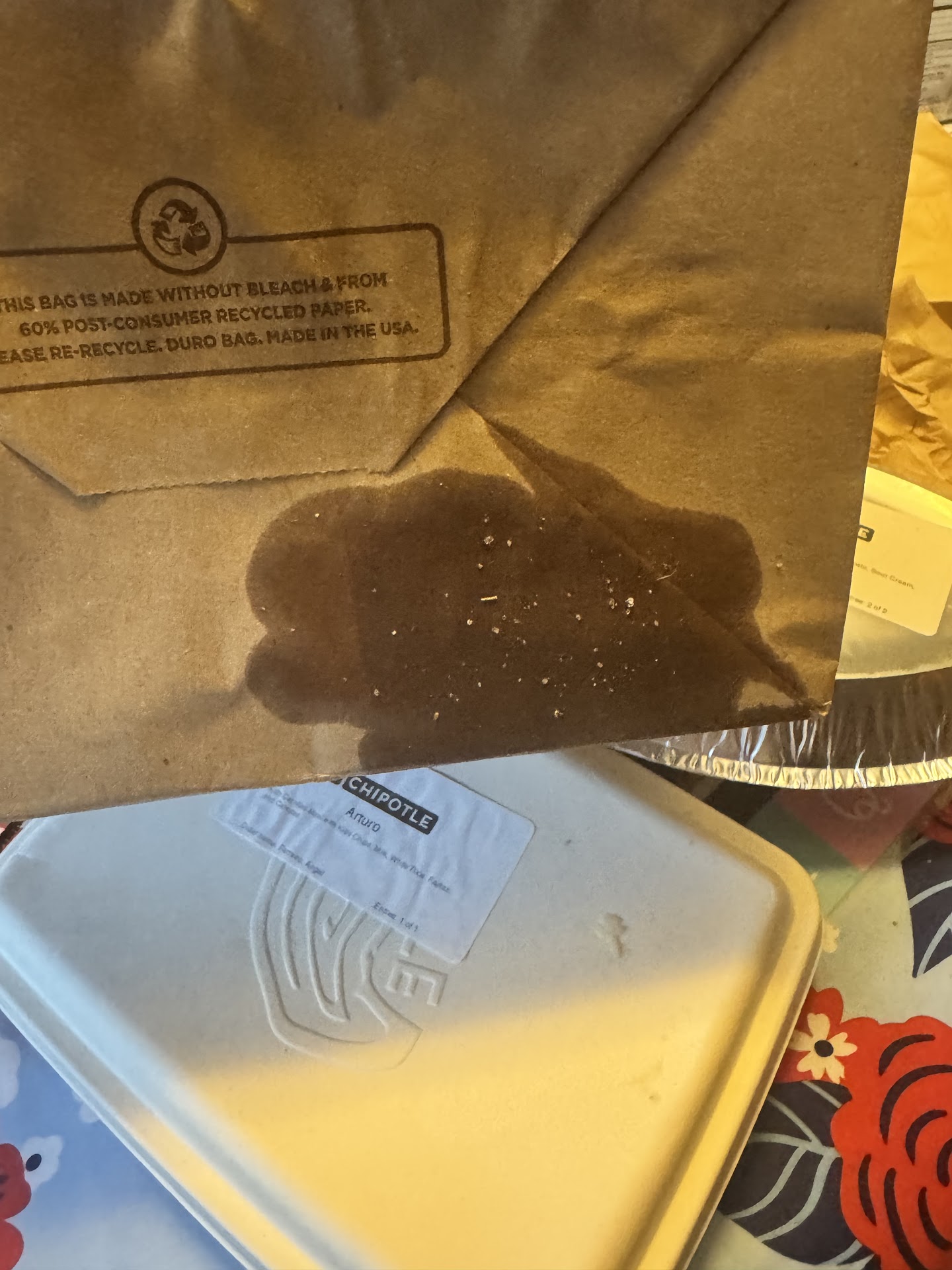 2 nights ago we arrived to pick up our Chipotle order at 7 when it should have been ready according to the online order. The girl came to the window and told us it would be about 10 more minutes because the steak was not ready yet. At approximately 7:10 another girl came to the window and told us it would be about 15 more minutes until the steak was done. I asked at this time if she could process a refund of my order as my daughter’s food was getting cold. After a few minutes a male came to the window and stated he was unable to process a refund and I would have to call a phone number to get a refund. So I asked to just get the food. He said he just put the steak on the grill and it would be a few more minutes. We finally got our food at 7:22 and my husband asked the girl if everything was in the bag and she said yes. We got home and I noticed the bag was leaking grease and the carnitas meal was really cold (and not edible) so they must have just left it sitting on the counter for the 20+ minutes we were sitting there waiting for our order. I have reached out to the site and included a picture of the bag and a picture of the bottom of the tray. The chips were so stale they were not even edible. The bag was also missing the Napkin/Utensils that were requested and on the receipt . To say this was a 1 star quality visit is being generous! I still have not heard back from Chipotle other than an automated message thanking me for my...