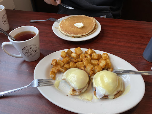 It’s too bad. It is to bad because this place has good food and a classic cozy interior. First off 1. You have to order your drinks and your meal basically everything as soon as you walk in standing up just as you walk into through the doors. What happen to either be seated or take your own seat, relaxing with a cup of coffee and looking through the menu. I get they want to pump out the food faster, but this is only to get you out faster and someone else seated, not to provide you with food sooner. With breakfast being $20 plus now a days with food and coffee. It would be nice to relax and enjoy your time and meal with your hard earn money. We were there on veterans weekend during the morning before the parade. Two people walked in, in full Revolution clothing most likely volunteers for the parade. They came in to use the bathroom and walk by the silly process of ordering your drinks and food while standing in a line. On their way through the dinning area they were yelled (screamed) at by the owner, who is a pretty sweet man, but obviously has zero touch on life these folks had giant hats on. And be littled them stating no ones seats themselves before ordering food and drinks and to get back here. When I say he screamed I mean he screamed, made a child cry and the whole place to turn and look at the situation and made everyone feel uncomfortable. Not a place I want to take my family from a hustle and bustling week at work to be hustled and see folks especially those who served it volunteering to be yelled...