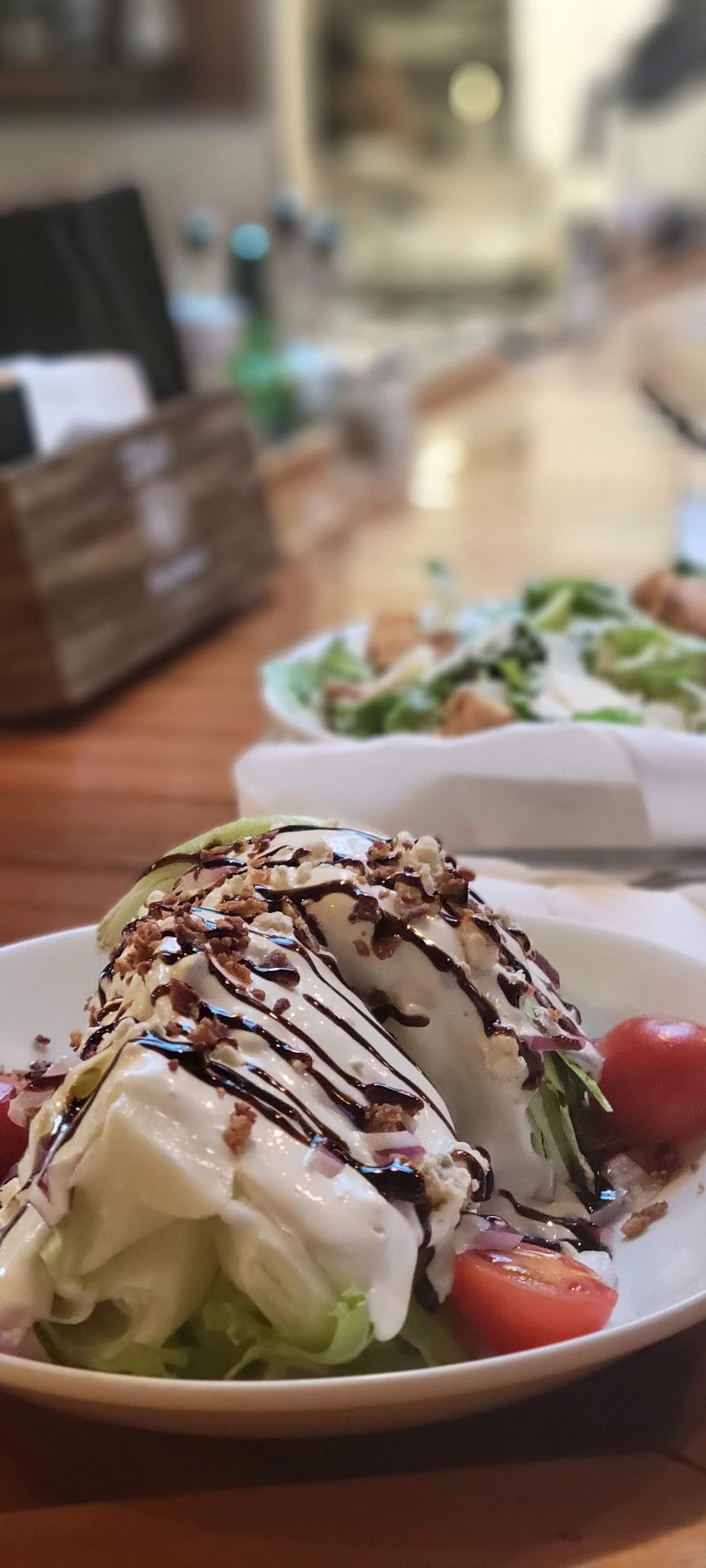 The food was good, though also a bit on the high side. The wedge salad (picture attached) for $17 was actually the highlight of our meal. That's not to say the other food wasn't good, but the presentation and taste of the salad was excellent. A perfect combination of balsamic and blue.