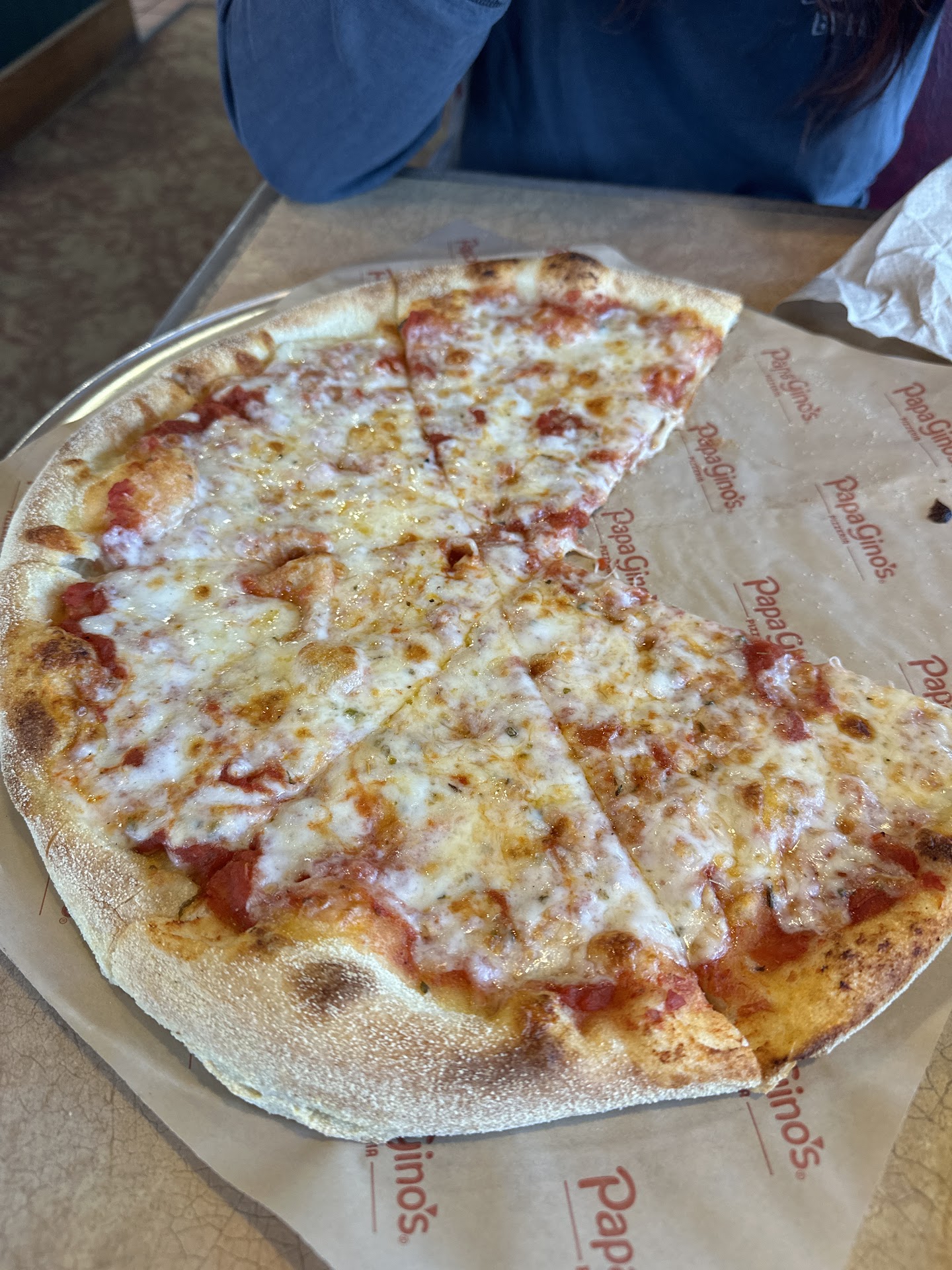 I was at this location last night between 7:30PM and 8Pm. The young man working at the register (Im searching for receipt for his name) was AWESOME. These days a lot "younger" employees in the restaurant business can be a bit disconnected from the art of face to face actual social situations. This young man (im sounding like my dad) was exactly what's missing in customer service. I ordered online from the hotel and felt like taking a ride. I walked in and there was a couple of customers putting in thier order. This kid was talking to the customers (actually looking at them and listening) with a smile while keeping the line moving. He didnt have the "what'd ya want and this is how much" thing going. He asked each customer what they were doing that night, how thier day was and even throwing in some clever humor. I reached the next spot in line and was just picking up a pizza. We talked for a few minutes and he was just a good dude. Im writing this in length because I was there maybe 7minutes and it made an impact on me. I talked to my girlfriend and said there's hope for the future. We had an experience at a Papa Ginos many years ago that was horrible. So we kinda boycotted them since. I missed having that pizza and I was tired from the trip and took a chance. Ill update this when I find out his name. If he see this...Im the guy going to record with a certain band we both like.... That 7 min made up for years. I go to a lot of spots everywhere and have been seeing the decline of customer service and polite treatment in almost all industries. This young man is an example of what people miss in businesses. He's made a impact on us. Just 7 minutes. Imagine how much he does in week. Keep it up (insert name)!!! They lucked out having you there. The pizza was ridiculously delicious. I ate the whole thing. Extra large (and the crust!!! Hahahah) cheers!!! Find out his name and tell him we...