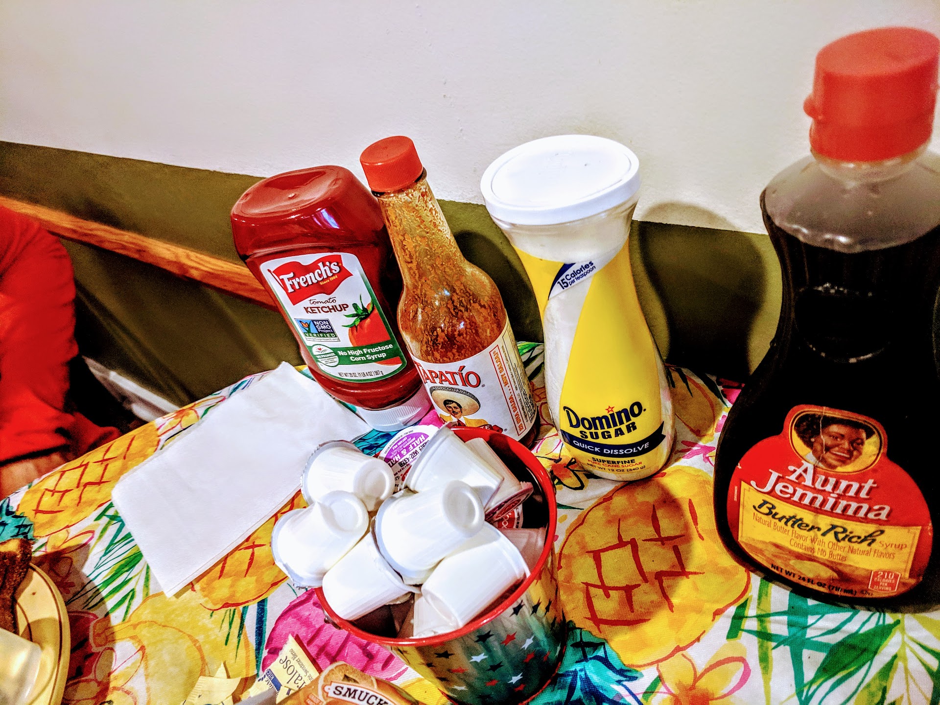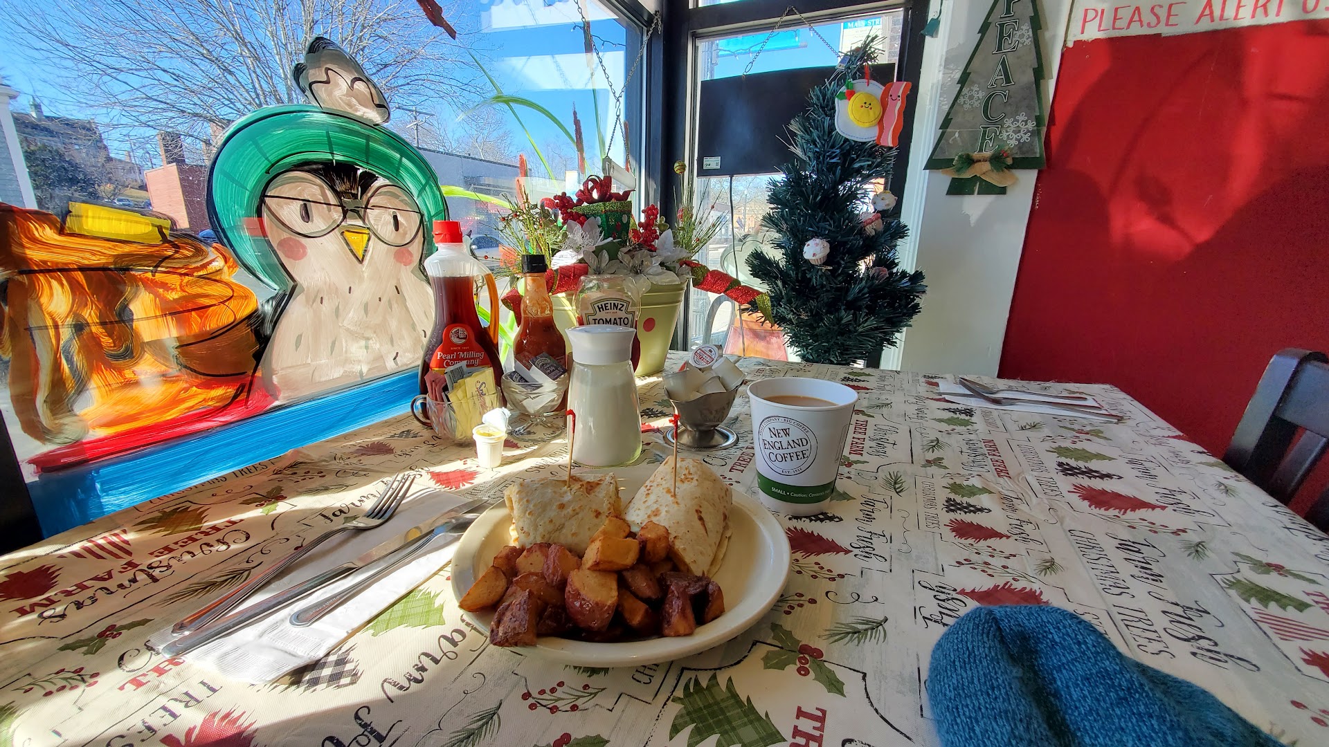Read more5 stars to me means the best-of-the-best among other characterizations. I'm not sure where you are eating but? For sure, the Riverside Cafe in Wareham puts-out a solid breakfast experience. This is a quaint and friendly local Cafe which caters to societal, local, and regional eating habits. My case-in-point can be found in their table condiments. (Picture included) This is a comfy enough restaurant which surrounds you in what could be described as your grandmother's over exuberant omage to candyland. As cited in many other reviews; the service and staff are a very friendly and talkative lot/bunch. We were engaged in a conversation regarding a shared affinity for crime detctive television. The food was prepared quickly and to order, and in fairness, the crowd was light. The omelettes were presented very well and the taste was good and served appropriately warm, but would require some seasoning to enhance the flavors. The coffee was of mid-range quality, but certainly better than Farmer Bros. The [side] of beacon was large, tasty, and crispy. Their popular cinnamon toast is good but comes with a layer of sugar on the crust which for me is not preferred. Overall, the rating should be in the range of 4.1-4.3...