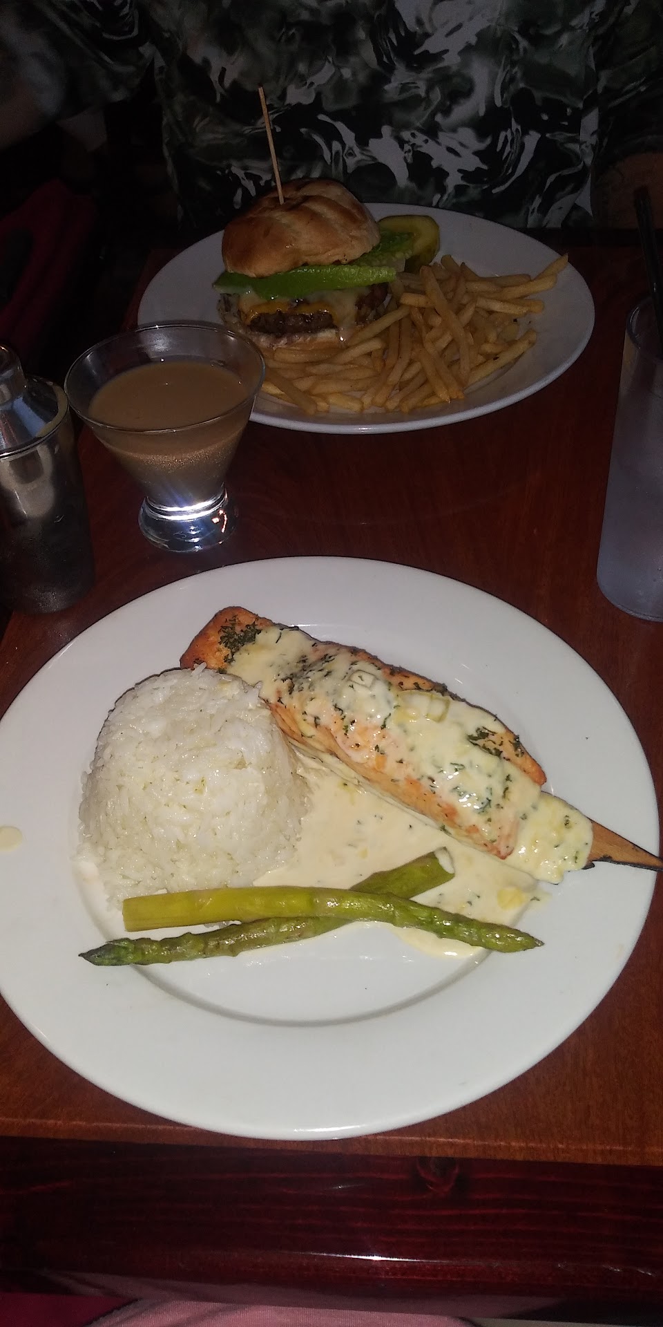 Ok on two dinner, Sean brought out two plates, then disappeared for a few minutes, then brought out another plate, and told me mine would be ready in a minute. The others were 1/2 done when my meal arrived. He also didn’t bring my wife her veggies but she is too kind to say so. He also brought 4 slices of bread, we all has a piece but we’re never offered more. One of the others was done first and Sean promptly cleared their plate while we were still eating. The food was OK nothing to die over. It is important to have a properly trained staff, that was not the case here. Perhaps they think young girls in tiny skirts/ shorts makes up for the lack of service, it does not.