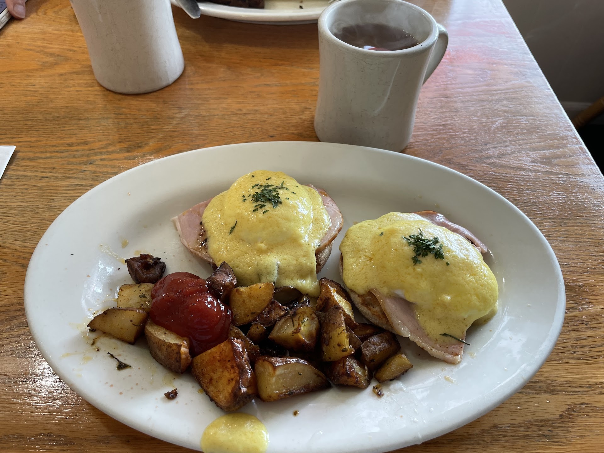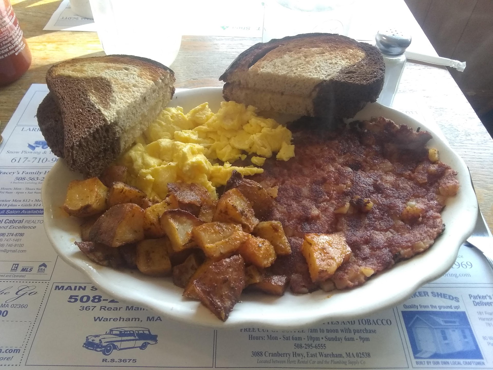 Read moreWanted some corned beef hash so found this place in area I was in and it had good reviews so I went. I was thinking it had house made corned beef hash from reviews but not the case. But it was a good portion of canned hash that is similar to most and it was done crispy as I'd requested so I enjoyed. It was pretty salty, more so than most I thought, but I did not add salt. Taste it before doing that. The potatoes also seemed to be heavily salted-I wish they'd let you add your own salt! I like salt, so someone who doesn't would find them overpowering. Service was good, portions and prices good. The reason I only gave 4 stars is they had an option on marble rye that was thicker than the regular rye. That sounded good and I ordered. When my bill came I asked why my meal was 8.49 instead of the 7.99 on menu. I was told my rye bread choice added 50 cents. She said she told me that it was an upcharge, but if I'd heard that I would have passed. Come on-how much more is bread that is 3/16 inch thicker costing you? This seemed like a ripoff. Food was good although salty, I will go again but will not order...