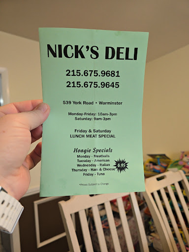 Read moreI'm sad to say that I've been living in Warminster since 2016 and yesterday 2/17/25 was the first time I actually went into Nick's deli. I've had their food before I have been to several parties where they got catering from Nick's and I always said how good it was and how fantastic all of the food that I tried from there is but I just never had the opportunity to pop in real fast. That all changed yesterday I had an Italian hoagie and it was by far one of the best Italian hoagies I've had in a while. Everything seemed very fresh and delicious. The people working there could not have been any nicer.