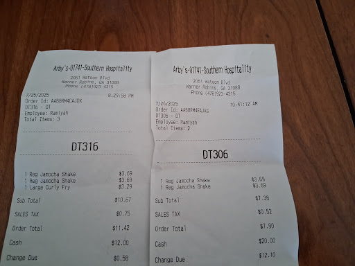 Read moreMy husband and I used to go to the arby's on Watson boulevard every week as a treat. We stopped going because it never failed for our order to be wrong. We would never go back and say anything they anything because the attitude of the staff is terrible. Well yesterday evening July 22nd We decided to take a chance and go to arby's because I really wanted a turkey bacon ranch wrap and my husband wanted a French dip sandwich. We waited at the window this time to make sure our order was right and of course it was not and when we asked for our missing items the staff acted like she was just put out because we wanted our missing items. We had to ask for 2 different missing items 2 separate times and our order was thrown into a plastic bag and the covers on the sandwiches we're coming off so the food was just free floating in a plastic bag. Arby's is not cheap by any means so so when you pay good money you expect your good food and that's not what y The bad attitude of the staff is enough to keep me away and I'm sure mine and my husband's business is not gonna hurt arby's in any way but we won't...
