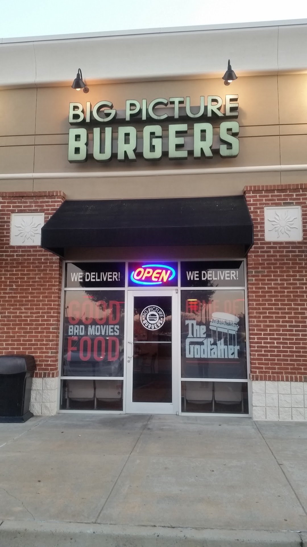 It was my first time eating here.. the employees are nice thy allowed me to take my time and look at the menu without me feeling like I had to hurry i decided to try" the big picture classic'. Turn off recommended for first timers eating here_ it tasting great it was a 1/2 pound of hamburger lightly seasoned it was cooked all the way through.. which for the size of the meet I was impressed that is was ...A+ you can order different toppings some are extra $ and some are worth it depending on how famished you are " I also ordered a side of fries which was lightly salted and season for $2.00 ex. Which really topped off the hamburger well" also if you are a movie this is the place for you the walls are decorated in movie replicas and posters. Is also a 85 in ejector screen on the wall that thy play different movies each day it is also a pretty kid friendly to . Big picture Burgers uses their own adult language software removal tool on their movies thy play great for sensitive ears no matter what movie is on"" I will recommend big picture burgers to anyone__. NOTE"_ he's sitting arrangement is a little odd for viewing the projector screen. If your there just to have a drink or a snack and there to...