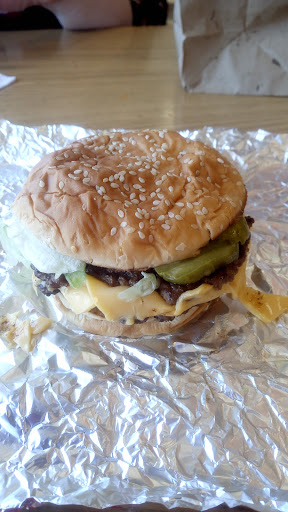 Please excuse the long post but people should know why I gave this 1 star, I am a fair reviewer, see my other reviews. My wife and I went on date and thought we would try Five Guys. We ordered and the cashier talked us into getting a medium fry to share because they were supposedly large portions, they were not. My wife ordered a cheese burger in a bowl with mushrooms, onions, green peppers and A1. When my wife opened her burger she notice the cheese was just a cold slice of cheese thrown between two warm patties. I say warm because it wasn't melted and didn't melt, her green peppers were raw but warm to touch like they had at least touched the cooking surface, and there wasn't any A1on the burger, she didn't notice that until half way through or I would have sent it back because three strikes your out in my book. I opened my burger to realize, it was standard to have a warm burger and cheap unmelted cheese. The fries were good but the burgers needed some work. Overpriced and underwhelming, I wish we would have went across the street to Steak-n-shake, for $30 I could have also had a shake...
