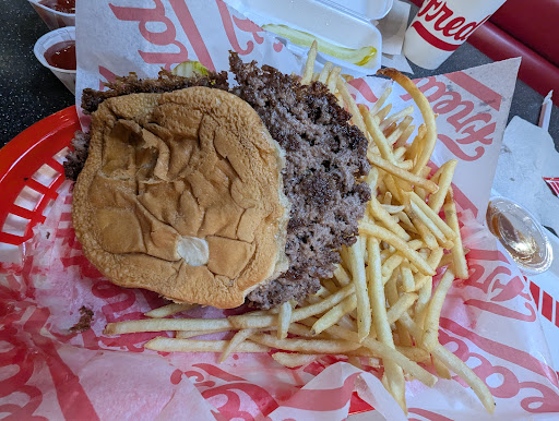 Read moreI'm a new customer here at Freddy's. And I must say, this place did not disappoint us. Upon pulling up... I knew the ice cream was what I was really here for. We decided to have our meal here too since we had just left the movies. Had a double steak burger with cheese and bacon... added lettuce tomatoes onions and mustard. Junior had a kid's cheeseburger meal. I was surprised most by the dry sauce and that these fries were like the smallest diameter shoestring fries ever made. This explained a lot about how fast the service was from grill to table. The patties are thin also, leading to shorter time on the flat top sizzling. Seasoning was not an afterthought... great flavor from such a thin patty. They called our order within a minute or two after we made our drinks and sat down at the table. At the pickup counter were 2 variations of fry sauce and a few fry seasoning containers. I was feeling too much in the way of adventure so I skipped the Jalepeno Fry Sauce and took on the regular Fry Sauce and a sprinkling of fry seasoning. You seen the rating already... so I'm not even going to delve into getting further detailed about Freddy's. This is a great stop every so often as a reward to self, child or showing someone that you appreciate them for whatever reason. We enjoyed it, and believe that...