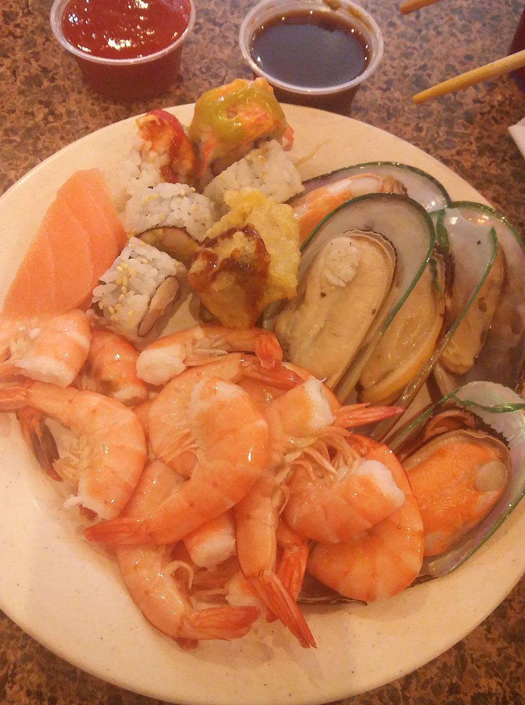 Thank God I am allergic to shellfish or I would have tried that sushi for value first - which noone was eating and who knows how long that was made. (Usually buffets like that will make premium items fresh.)