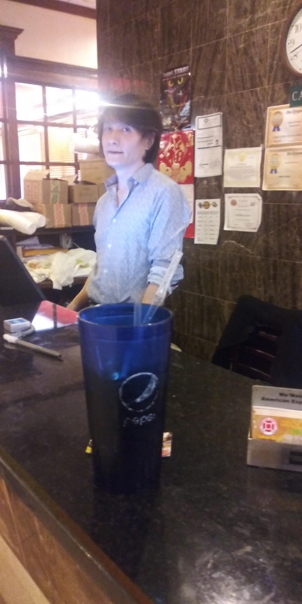 On top of that I ordered water and the cup was clearly dirty. My dad ordered soda which he says tasted like carbonated water with a dash of flavor. But at least there was a straw. The booths are way too close together. I'm a regular sized lady with extra weight as most people come, but it was like playing Tetris to get into the seat and getting out the seat was harder.