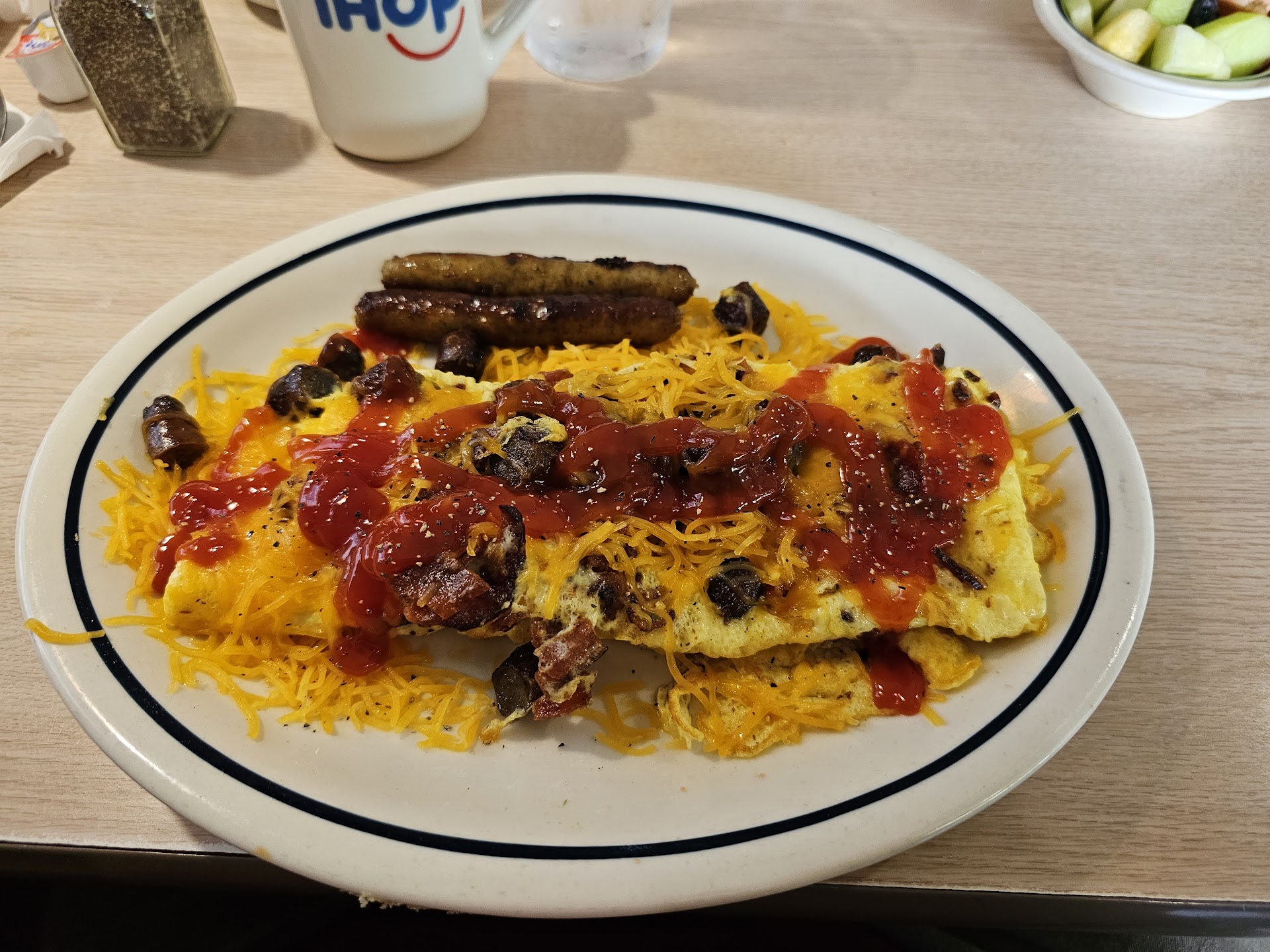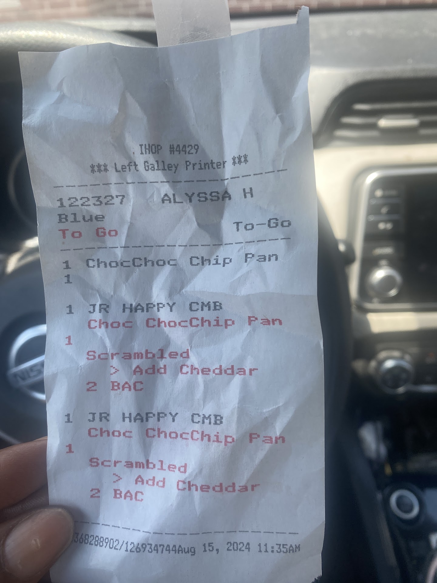 Read moreHonestly the atmosphere was great. It had a classic midwestern diner feel and MOST of the employees were very friendly and super happy. The other customers in our section were great too. However, we were approached by a woman who was making balloon animals for the kids and she took a few minutes to get each of the kids one and then kind of hung out awkwardly for a moment. She said something but I'm hard of hearing and didn't catch it. But my wife started digging for something and then pulled cash out and tried to offer it to her. But the woman then said something about Cashapp and then my wife said she was asking for a tip. She gave us a card and told us to use the phone number to tip. We had no idea this was a paid service and she made us (and my wife especially) feel super awkward because she pushed for the tip three times. Very odd and unprofessional of IHOP in our opinion. Our server, though straight to the point and clean cut, was not happy to be at work today. He (Ayaz) was very sullen and almost sultry. Quiet, never a smile on his face. Did the absolute bare minimum. His table etiquette was non existent. Our food was basic but the crepe meals were terrible. We got the breakfast crepes and I swear they split a single egg and a single piece of bacon between the two crepes and then loaded the rest of it with old hashbrowns. Disgusting and a waste of money. Also, we got our youngest a $4.29 bowl of fruit and the entire bowl was honeydew melon and a couple of blue berries with three pieces of old pineapple. Absolute waste of money and highway robbery for the price. We won't be going back to this IHOP. It's super unfortunate too because the atmosphere was wonderful. (Get the balloon lady OUT of the restaurant and train your servers to at least put a fake smile on when interacting...