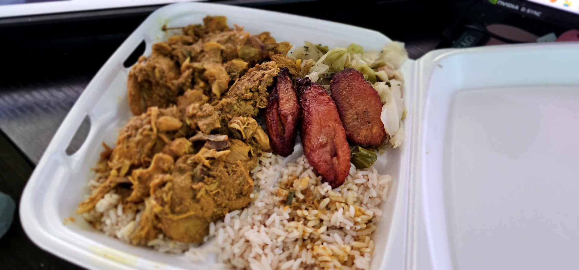 Every meat tasted the same, from the brown stew chicken, to the jerked chicken, to the oxtails, and the gravy was extremely watered down. The Cabbage was hard and crunchy, not tender, the plantains were burned, and the rice and peas had leftover aromatic branches left in it. Maybe they were just having an off day, but considering I went in during peak lunch hours and then food was still as such, leads me to believe that the quality of the food is constant no matter what time of day you go. As a chef myself I was exceptionally disappointed with the seasonings, as Jamaican cuisine is usually known for its bold and spicy flavors and everything I had was extremely lacking.