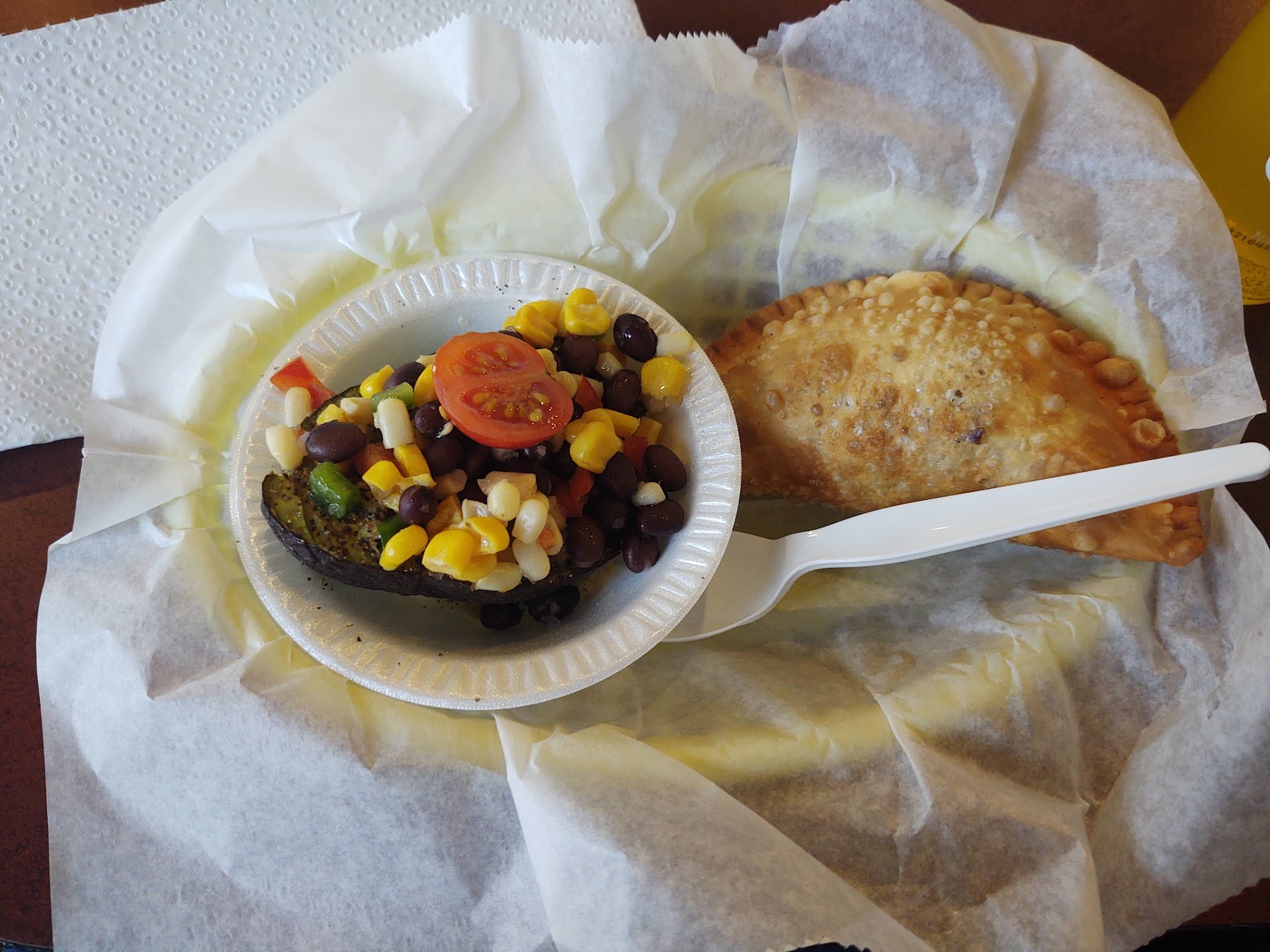 Read moreA colorful, happy place to have lunch and try some new foods. Empanadas are dough filled with a variety of foods and deep fried. Fresh vegetables, chicken and apple are my favorite. Each costs 3.00 and you need to order at least 2 to fill you up. You get a side which can be a half of an avocado filled with a bean salsa. Or a side of egg salad, or a fruit kabob. You go inside and walk up to a green table and order. You see 4 framed options. One with a drink, side and an empanada on up to more empanada. Somone takes your order then gives it to the cook. You walk a little further to pay and they don't take any tips. You take a number and sit down. They will bring out your order when it ready. They serve the foid in yellow baskets. They have boxes at the garbage cans to put the bottles in to recycle. They ask you don't throw away the baskets. Local artists have paintings on the wall. They buy their food from...
