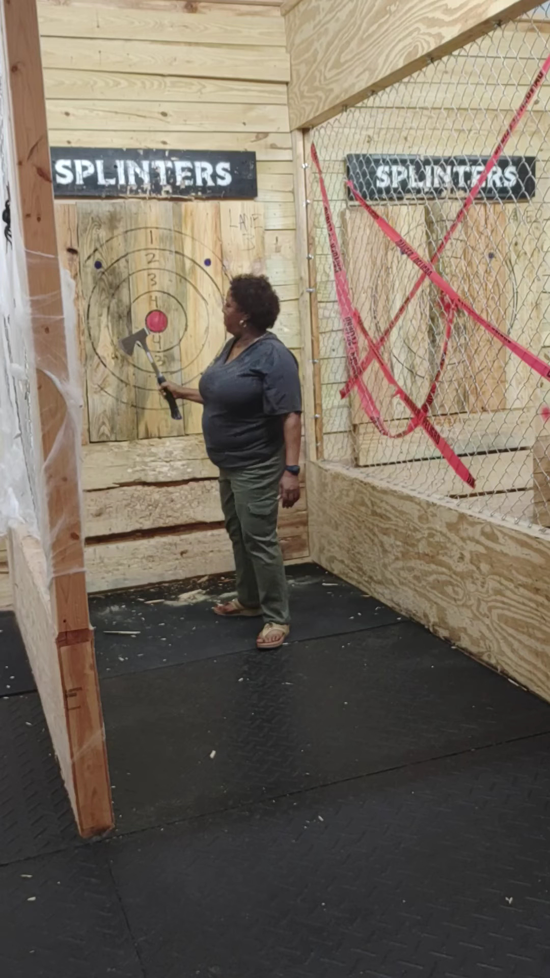 Read moreFirst experience throwing axes. The night we visited, Splinter's had a Halloween party. Each patron received a little bag of treats. Customer's dressed in masks and costumes. The music played had a Halloween theme. $3 beer....drinks very reasonable. I can't say enough good stuff about the staff: Very personable, attentive, great service and humor. They serve French fries that remind me of a cross between curly fries and potato wedges. The fries hold heat very well, so potatoes don't get cold fast. The chicken tenders are hot and juicy. Axe throwing instructions are provided prior to playing. Our trainer was named Tray. He was patient and comical. Safety is stressed. There's also a pool table for those who like to play. Splinter's is in the process of opening the other side of the building which will house more playing events, bar...