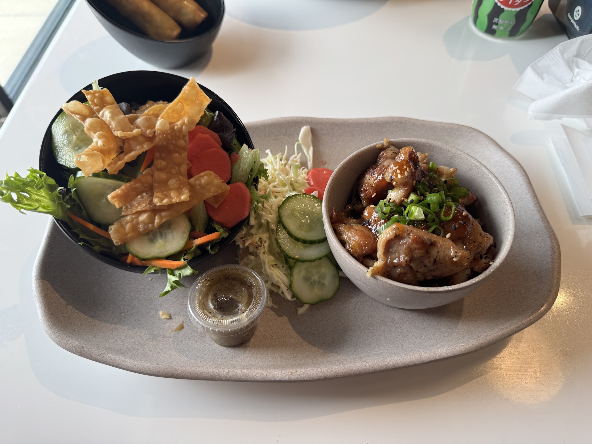 I got the Tenmii Chicken plate and my son got the Japanese Kate Mazeman with chicken. We also split an order of steamed gyoza and the Vegetable Harumaki Spring Rolls.