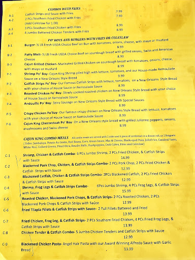 Read moreAs always, the food at Cajun King does not disappoint. This was, however, my first visit that they did not have a buffet, and instead had a menu from which you could order. The pros were you wouldnât eat so much that you had to roll yourself out with a wheelchair & the food was cooked fresh and hot to order. The downside was that you couldnât just try a little bit of everything, in case it was your first visit to this restaurant. I was surprised that we were the only people eating at early dinner time and also that there appeared to only be one waitress and two people in the kitchen. In years past, the restaurant was almost standing room only. My guess is that when COVID-19 hit Oklahoma City, the buffet went away because of it . We still ordered our favorites, though..fresh fried catfish with their delicious sauce, jumbo fried đ€, red beans đ« and rice, hush puppies, and sweet tea. And donât forget about their absolutely DELICIOUS beignets!!It does make me a little sad that the beignets used to be included with your meal, and now you have to order them separately. But regardless, they are SO worth ordering them separately! If it werenât for the risk of future angioplasty, I could probably live off of their fried catfish, beignets, and red beans & rice!!