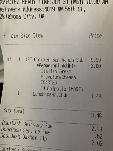 Ordered via app and went to pick up my food half an hour after opening. I got there and was told told to cancel the order on my end because they didn't have any bread at all. Unfortunately, I can't cancel via app. Was offered flatbread instead, but I'm not a fan. The last and only option was to come back in half an hour when bread would be ready. So I drive away empty handed and come back half hour later for my food. The manager has it ready on the counter for me. Didn't even offer a drink, cookie, nor anything for the time and gas wasted. I get home starving as it was later than I was hoping to eat, and the sub is skimpy on meat and veggies. Guess she's trying to keep food costs down to get that bonus. Go to a different location or chain and save...