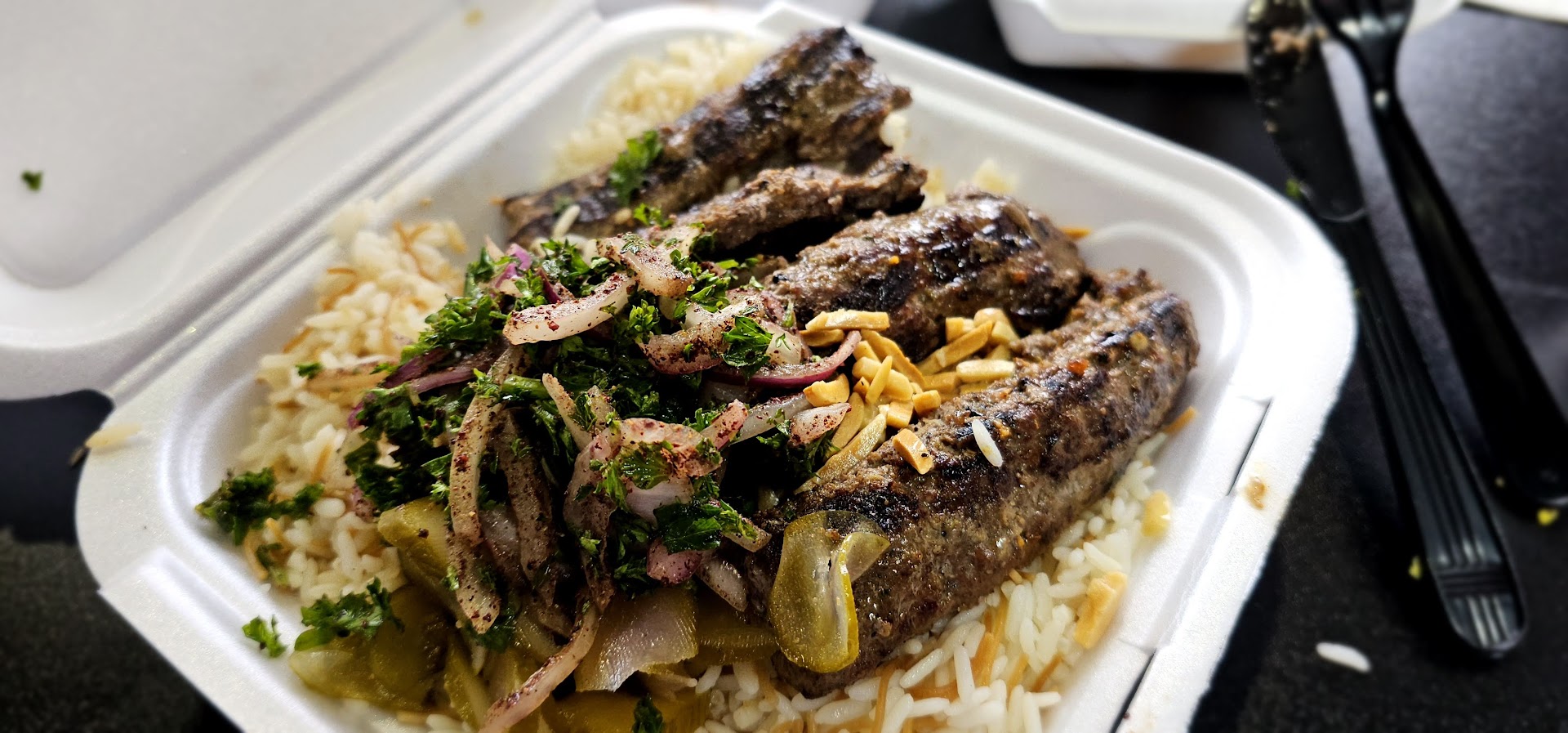 The menu is a celebration of tradition, featuring classics like creamy, garlicky hummus drizzled with olive oil, tender chicken shawarma wrapped in pillowy flatbread, and golden-brown falafel with a satisfying crunch. Standouts include the succulent lamb kebabs, marinated to perfection and grilled over an open flame, and the vibrant fattoush salad, tossed with crisp veggies and tangy sumac dressing. Don’t miss their baklava for dessert—flaky layers of phyllo pastry stuffed with nuts and honey.
