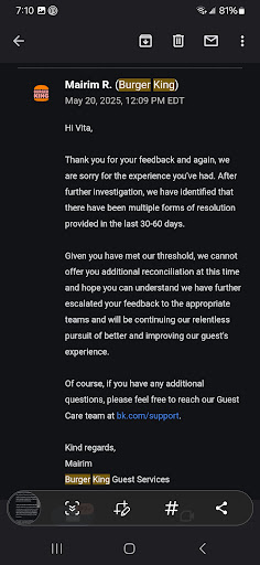 Read moreI have watched this location go down the tubes in customer service over the last 4 years. The management and customer service quality simply sucks. II liv across the street and have for 4 years. This morning was the last time I will visit this store. The manager, Linda, did not hear one of the sandwhiches we ordered and we asked her to correct it at the window and add the sandwhich prior to paying. I was told that they did not take orders at the window (even though I was the only customer in line). I decided enough was enough and went to the Burger King a mile and a half away. With your about us page stating things like, "We are our guests’ favorite fast food destination. It’s that simple…to be our guests’ favorite… the one they prefer above all others." and many other statements of customer service being the most important, either this is just P.R. B.S. or this lady does not care about your company standards. When I called up to request the number to the corporate office, I was told that they did not have a corporate office. So I asked who the management company was, and what their number was, I was told to Google it and that she did not have that information. 🤥...