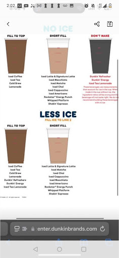 Read moreLast time going to Dunkin. After spending $200 a month for years today I was given my coffee 5/8 of the way filled because I wanted my ice coffee w/o ice. At $4 a piece I should be able to get it how I'd like it. People are tired of it. If you don't say no ice you get a cup filled with ice and 4 sips of coffee for $4. I used to say "less ice" but that doesn't work anymore. You will still get a half cup of ice.