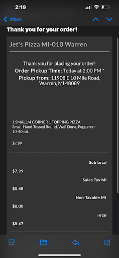 Feb. 14th, 2019: I decided to get a heart-shaped pizza for once. I was very disappointed. The pizza didn't look like the picture on Jet's website. I thought it would be a larger pizza and a deep dish pizza with sauce & topping edge to edge per the picture. I was wrong. It had a lot of crust on a SMALL pizza.