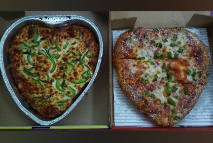 I decided to get a Hungry Howie's heart-shaped pizza and compare the two. Both pizzas are a "well done", green pepper topping pizza with flavored crust. H.H. was like a deep dish, so it had more cheese & topping. I did like the taste on both pizzas but leaned toward the H.H. because there was more cheese & topping.