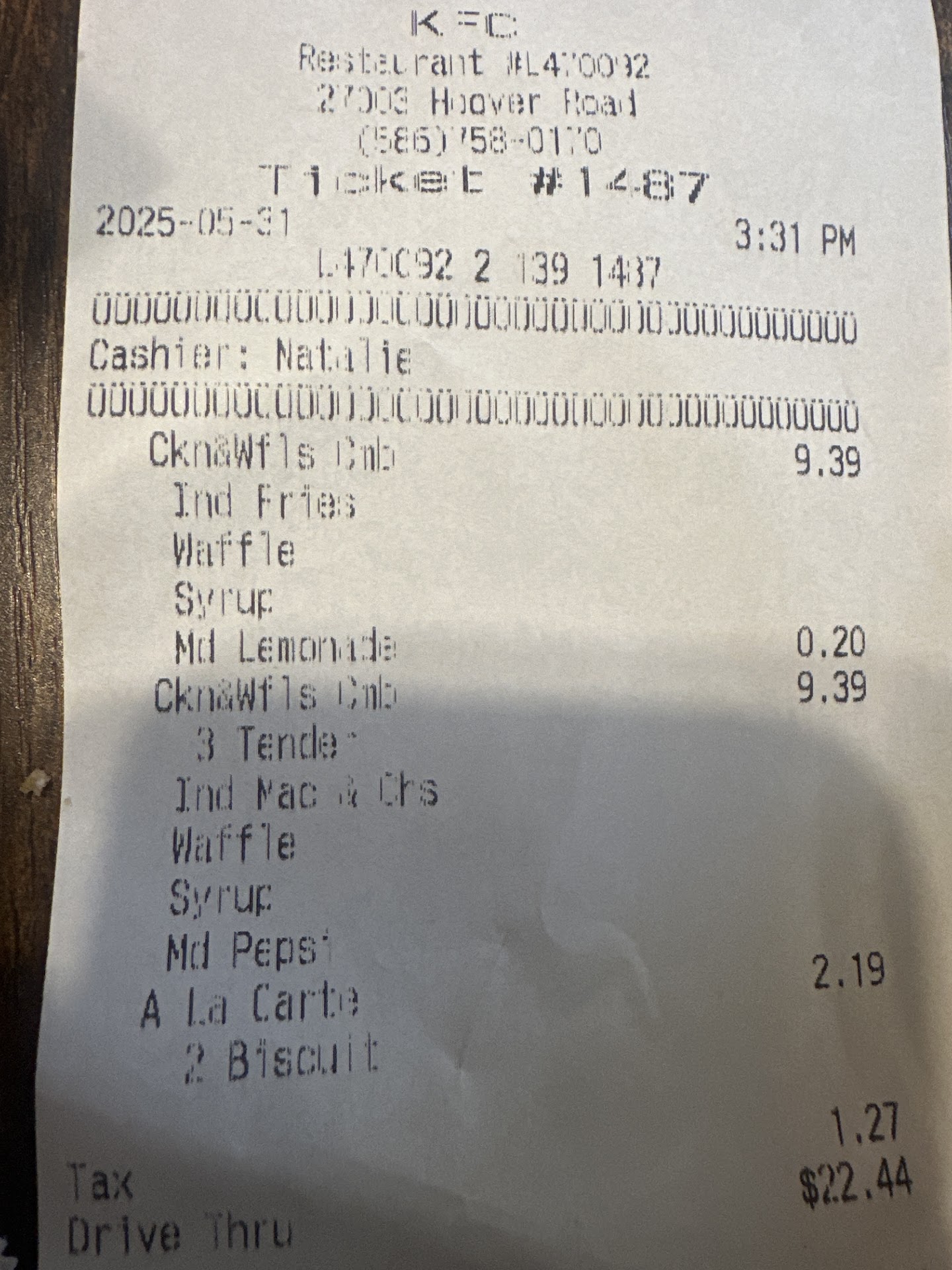 Read moreI was a little wary of their Mac n chz after having that bowl with the spicy chicken a couple years ago, their was so much oil in the bottom, very off-putting. But it was actually so good! My complaint however is that we didn't ask for it 😅. We had 3 meals total, which should have come to a maximum of 5 sides because 2 people ordered combos with 2 sides. We ended up with 3 Mac n chz, 2 mashed potatoes, and 2 coleslaw but none of the fries we ordered or the biscuit with one of the meals. After circling back to get our fries and a biscuit, we still managed to get home without the biscuit lol but the food was still great overall, fresh and delicious. I'd definitely...