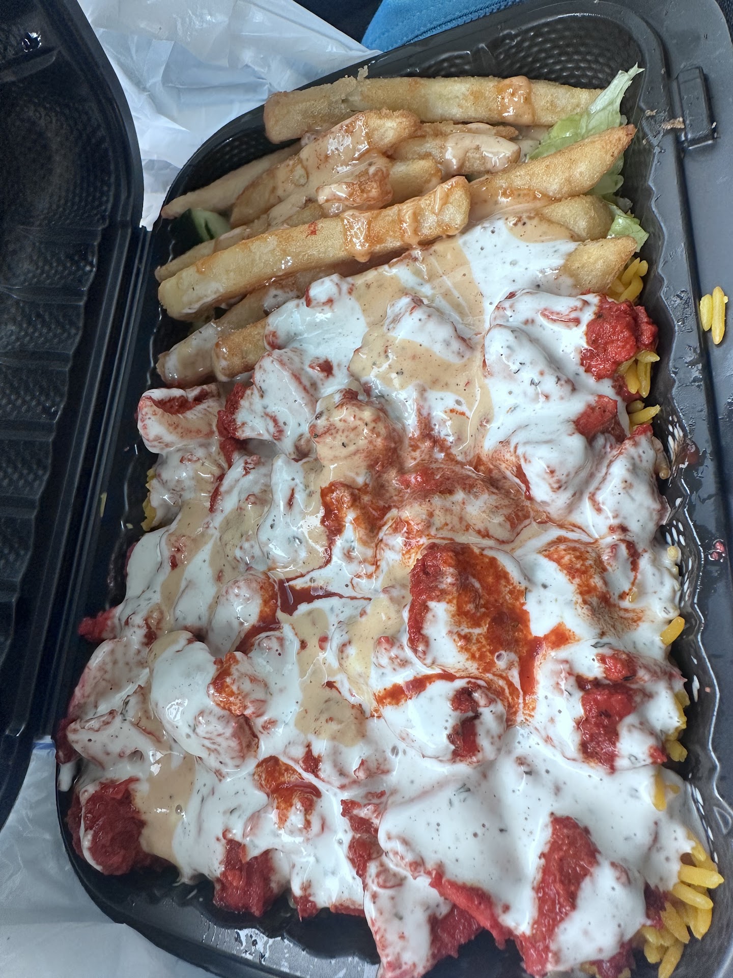 The food was absolutely delicious! I ordered the double cheeseburger, loaded fries and chicken and lamb over rice and it exceeded all expectations. The burger was perfectly cooked with fresh, high-quality ingredients, and the fries were golden, crispy, and perfectly salted. You can definitely tell they use fresh ingredients, and everything tasted so much better than typical fast food.