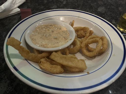 Let’s start with the food: the calamari is hands down some of the best I’ve had anywhere. Perfectly crispy, not greasy, and served with a dipping sauce that’s just the right amount of tangy. You can tell they actually care about what comes out of the kitchen here — it’s not just bar food, it’s good food. Everything we tried had that same “made with love” flavor — fresh, flavorful, and comforting.