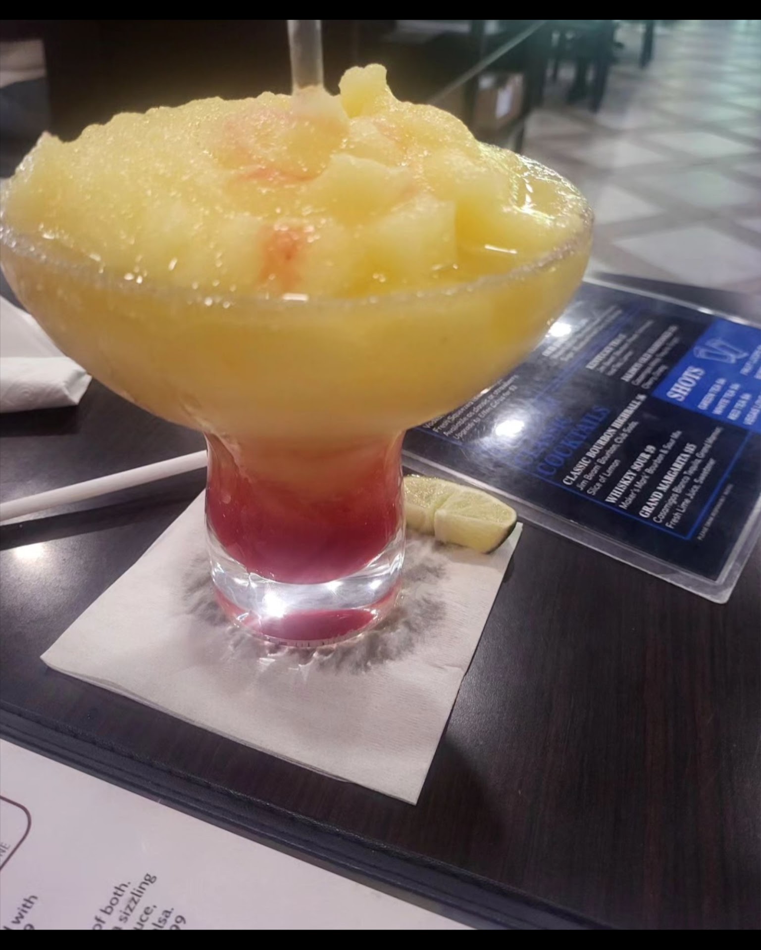 We were greeted with a smile and very nice young woman and taken to our table, which I might add had plenty of room between the table and the back of the booth. We were then greeted by Alexia with a fantastic smile and warm and friendly greeting. She took are beverage order and gave us a few minutes to look at the menu. She returned promptly with our drinks and we placed our order.