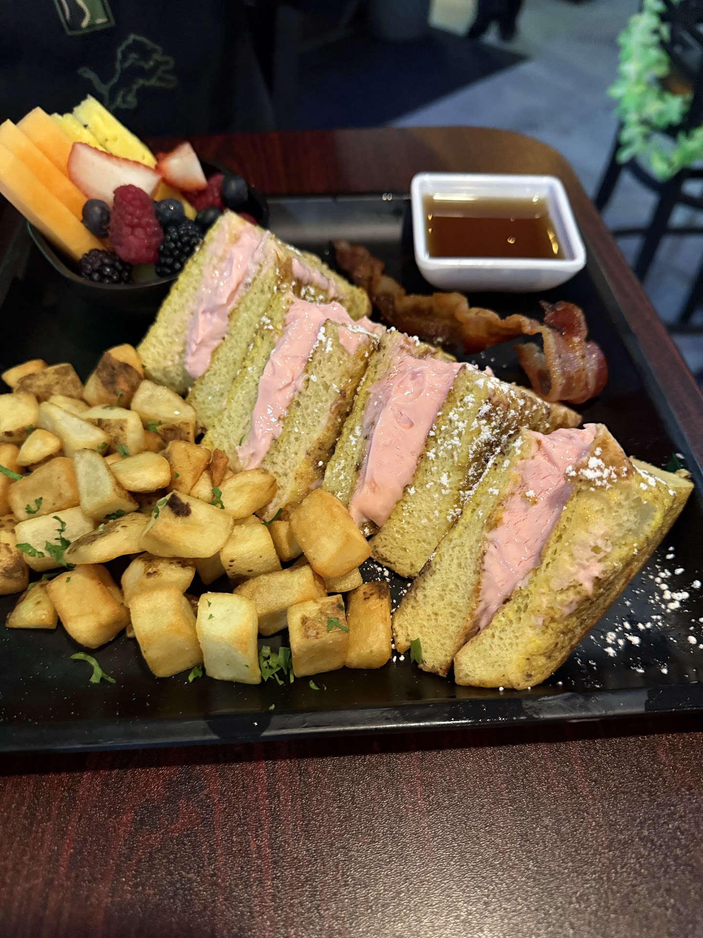 My husband got the strawberry cheesecake stuffed French toast and I got the kids brunch plate. It’s a lot of food, but...