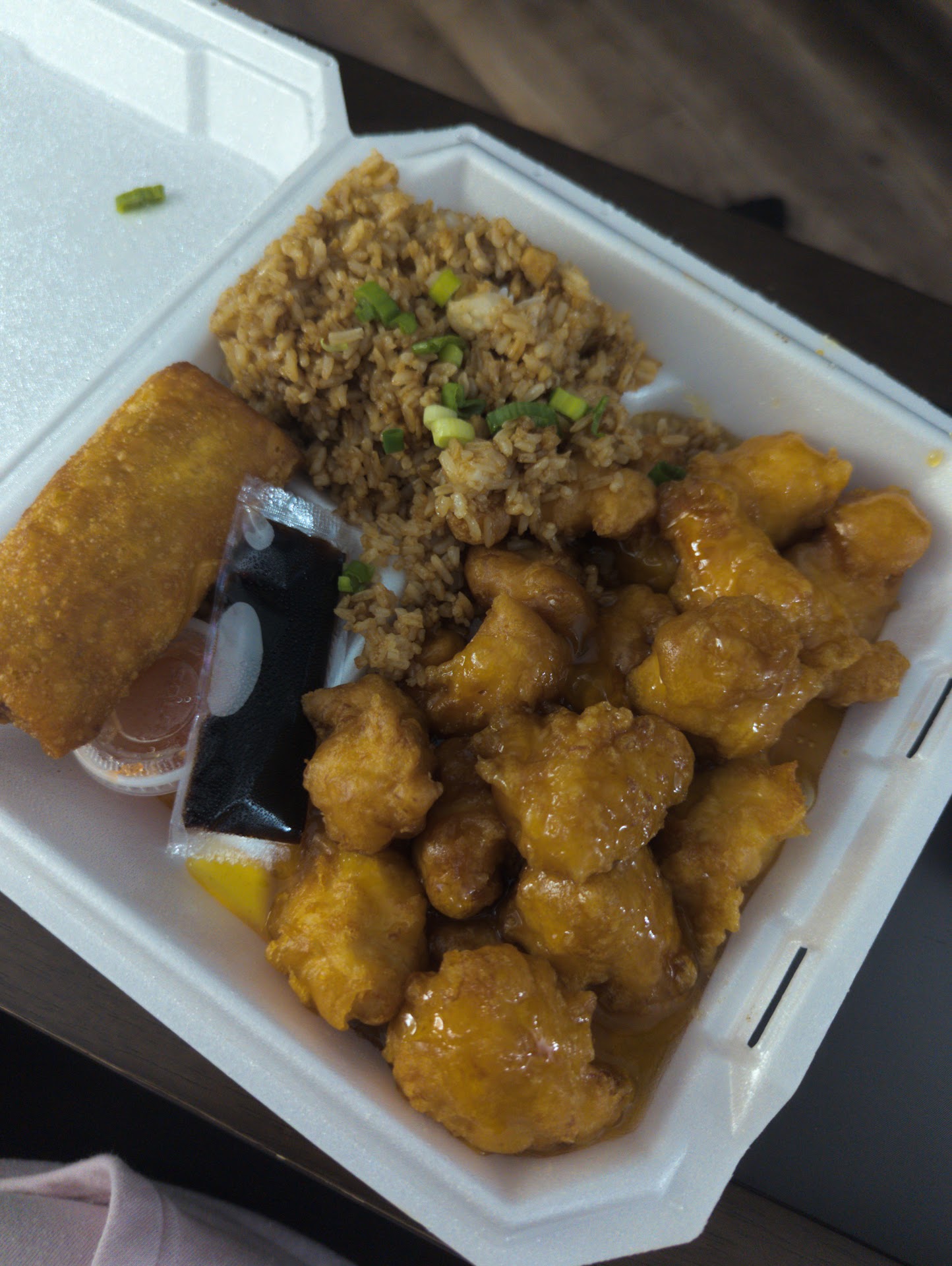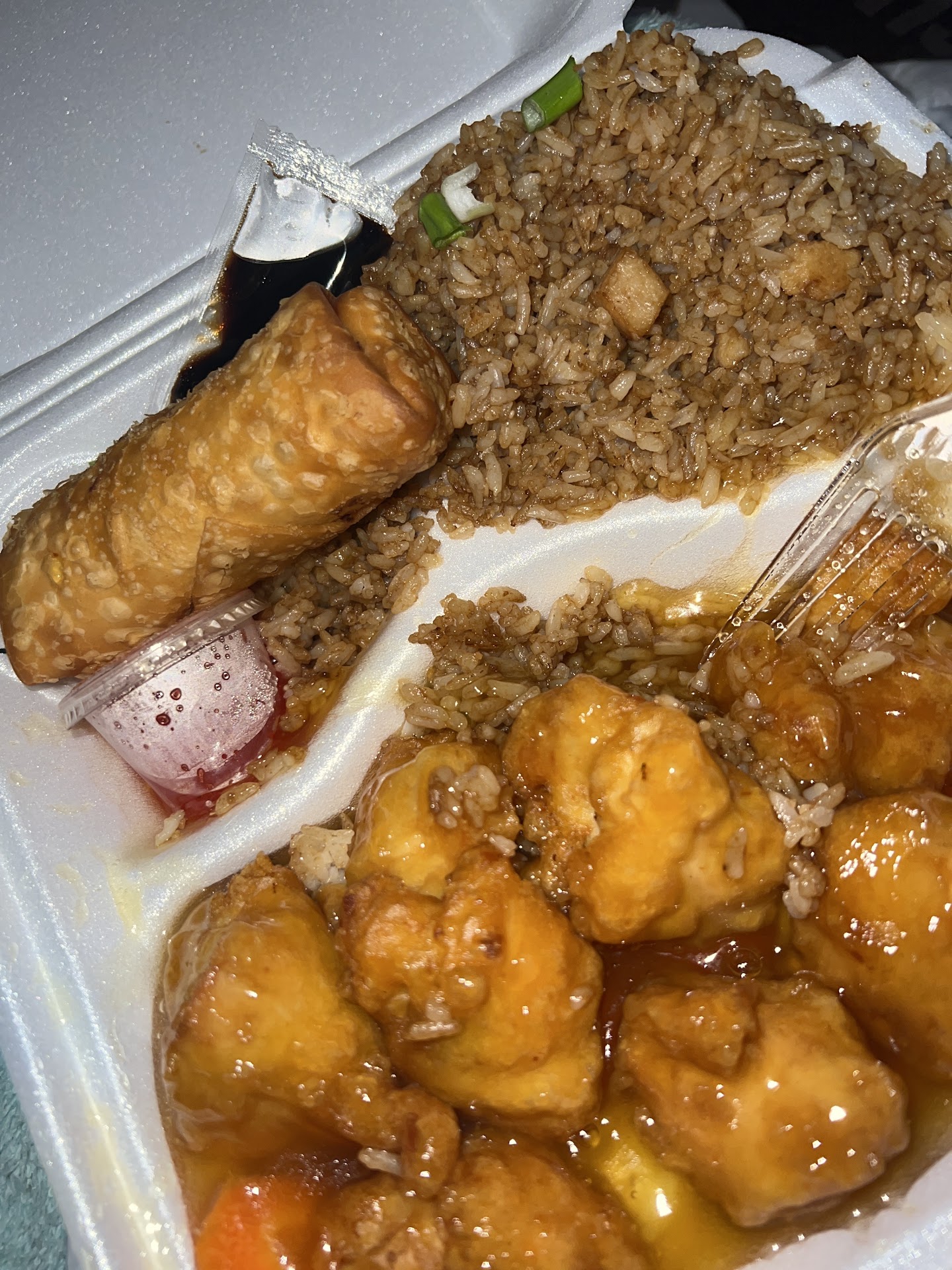 Read moreFood was over $45 just to be thrown away. The sweet and sour chicken sauce was absolutely disgusting. It tasted like it marinated in an unwashed pot full of mold and chemicals. The fried rice was really good but barely got to eat any of it because the sauce was all over the fried rice. The eggrolls were atrocious. Not fresh ingredients used in those. Also the crab rangoons were nasty. Took one bite and threw out the entire thing, huge chunks of fishy crab and too much raw onion in it, never had crab Rangoon taste like that before, was served with that foul sweet and sour sauce. The general tso chicken was actually good, too many vegetables in it though and not enough chicken. Wait time was told it would be 15...