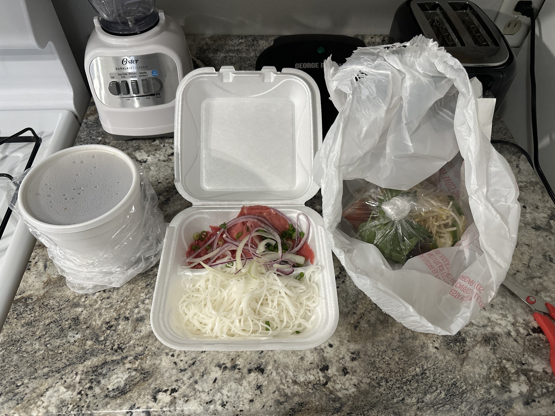 We are trying new places around us and stopped here. We ordered ahead and added a drink at pick up. So, the dining area and restaurant overall looked dirty. Cluttered cashier area, greasy windows and glass, curtain hanging in the kitchen doorway, floors dirty. While I was waiting for the drink I asked if I could get a side of chili oil to go with the food. Just a small condiment side that they give in the tiny plastic container. The female cashier walked away to get some. The male employee behind the counter said I could have some but I'd have to pay for it. There were containers of it at every table for those dining in but, I guess if you ask for the same consideration as a carry out customer they charge for it. I started to open my order and just dump some in there but the guy was so rude about the whole thing I just decided to leave. I'm mad I added a to prior to this interaction. Other customers standing at the register also asked why there were charges for certain sauces that go with the food ordered. They were complaining about it as they left as well. So, for customer service this place gets a zero. FOOD: The pineapple fried rice was ok. The vegan pho broth was ok. The vegetables and noodles were disgusting. The mushrooms were bad and they had bamboo shoots and water chestnuts in there which I've never seen in pho. The veggies were raw and I guess if the broth is hot enough they cook a little. The bubble slush... Frozen boboas. Overall, I would NEVER come back here or recommend this place. The employees are NASTY, the restaurant, NASTY and the food is disappointing. I don't know how they got the reviews they have up there but that wasn't out experience....