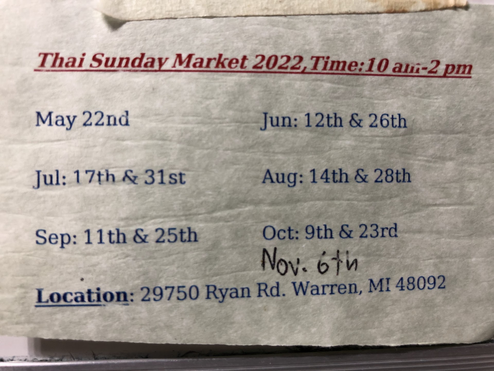 Read moreSince it is a seasonal market, there are a variety of booths opened. It is one of the best street foods out here in Michigan. Towards the end of the season, you must lookout as there are less booths opened. The most highly recommended foods, traditional to Thai are: coconut desserts like pancake and pink chestnut, banana fritters, mango sticky rice, pork buns, noodles, papaya salad, and...