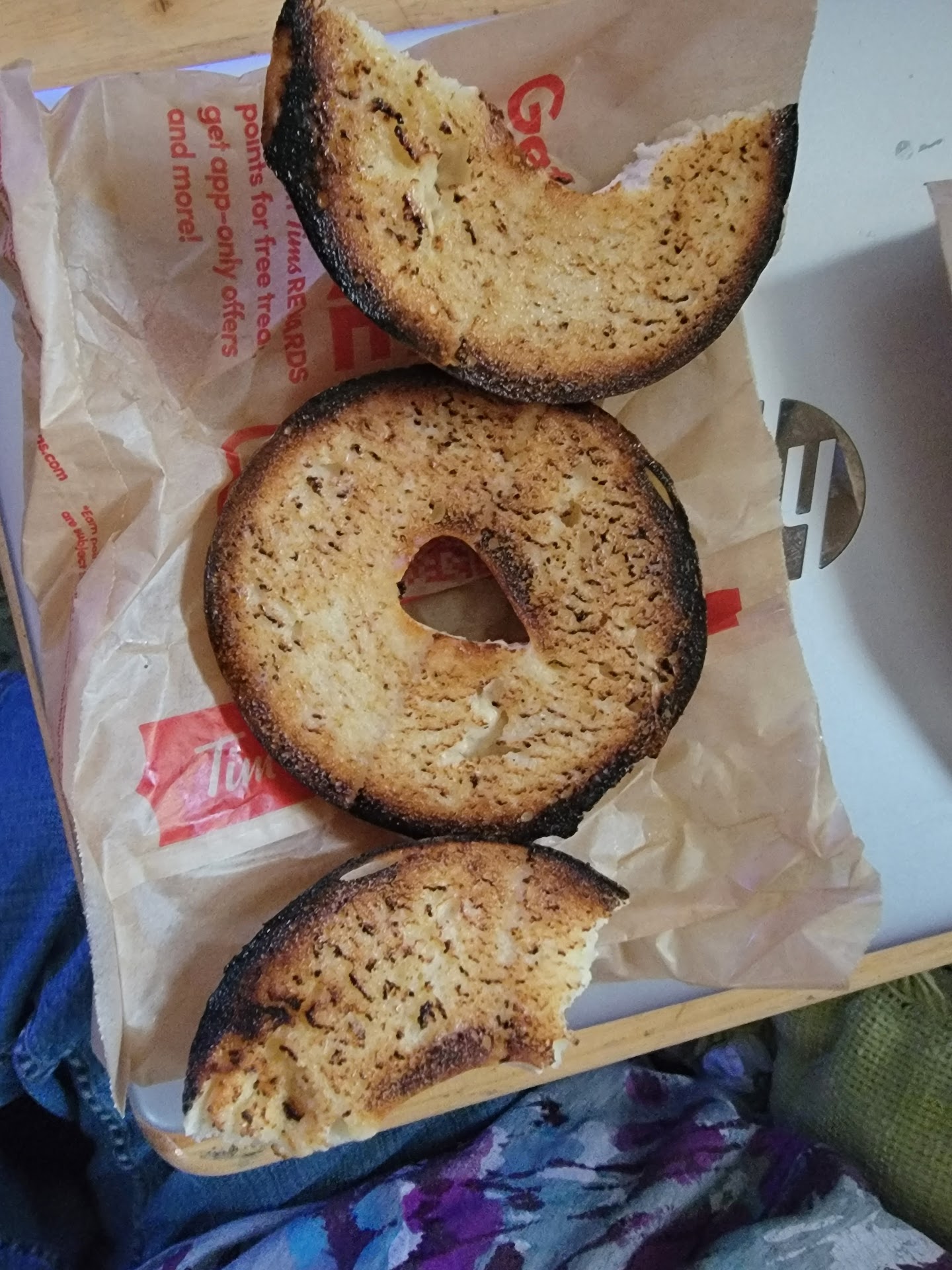 My bread is stale and hard and cold on one side along with the cheese and egg being cold, oddly but the other side of bread is warm along with the bacon. Go figure.