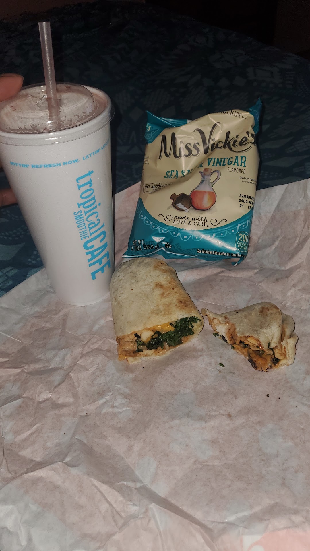 Read moreAbsolutely delicious, I got the Thai wrap and my boyfriend got the Turkey bacon ranch. Food was ready in ten minutes as estimated. Everything was made exactly as requested. The sides we opted for were the jalapeño Corn and apple kale salad, both unique but delicious. For smoothies we got the mango magic with strawberry and the beach bum with a strawberry straw. Blending was perfeeeeect. There were closer tropical smoothie locations to me but they only had 2 star reviews so I went the extra couple miles to this location and so glad I did. By the way, I went on a Thursday during lunch hours, the staff were still able to make sure I had everything...