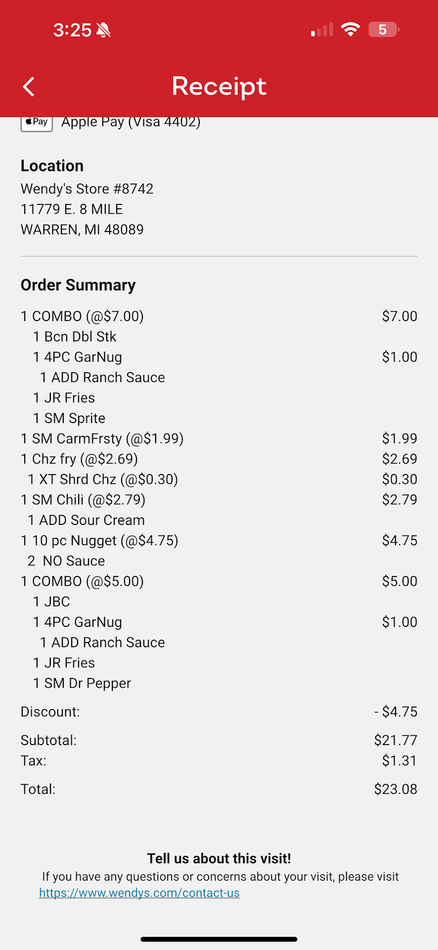 Regardless, Wendy's is responsible for giving the correct order. Which they neglected to do, and until they get their service corrected I'm not ordering delivery from this location.